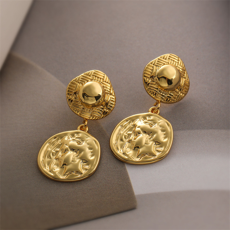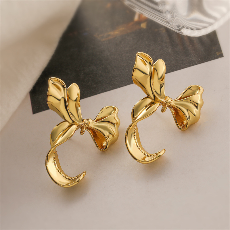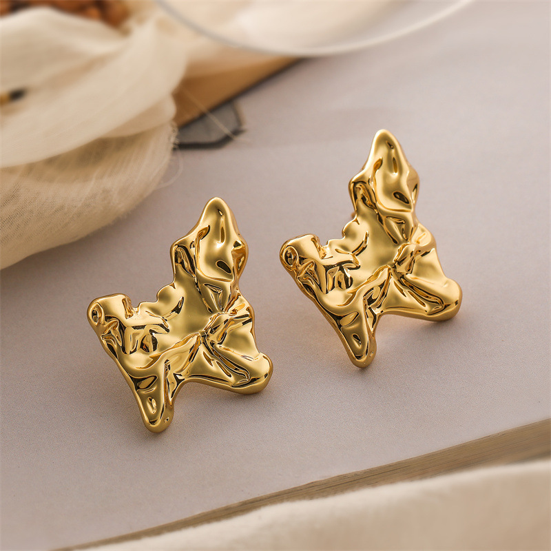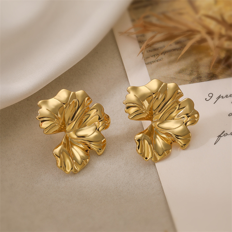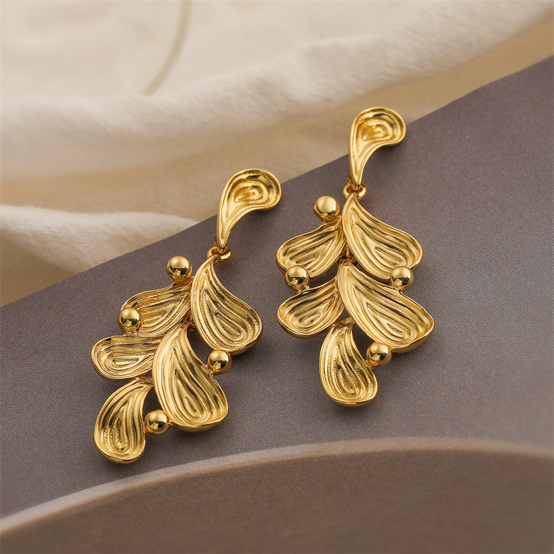 18K oro real chapado arco de oro simple pernos de metal alta sensación de moda aretes de hoja de arce retro