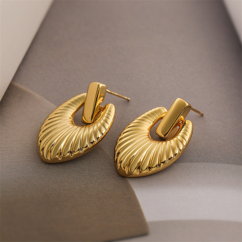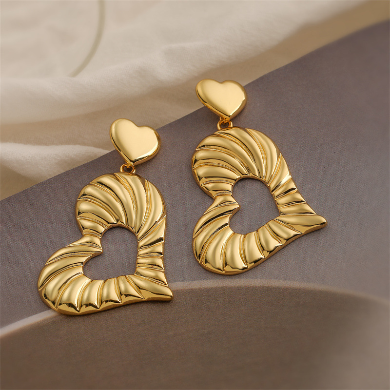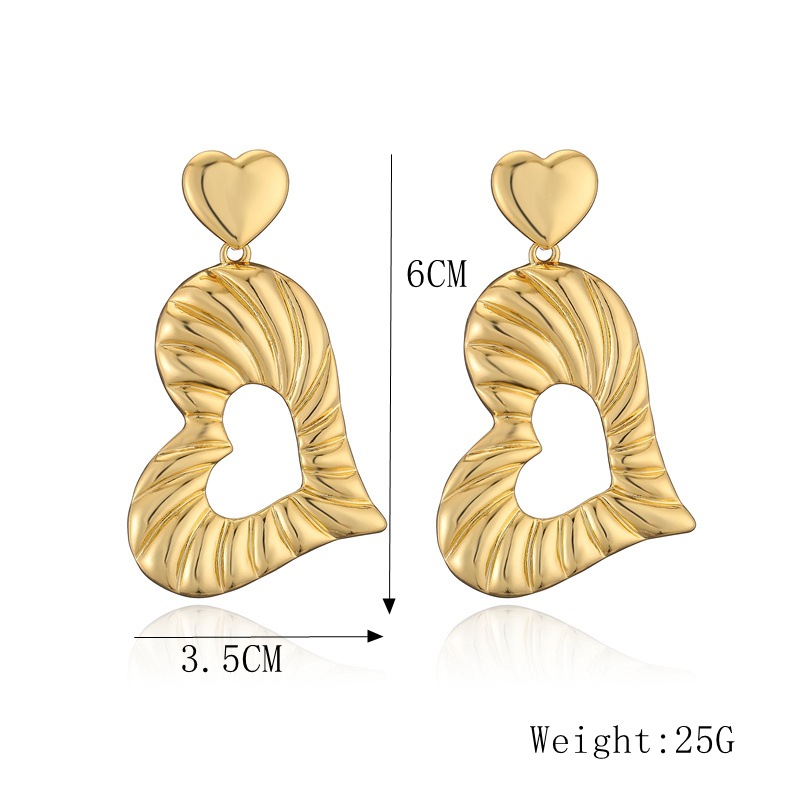 18K oro real chapado oro amor pendientes de metal simple pendientes de alta sensación de moda pendientes geométricos retro