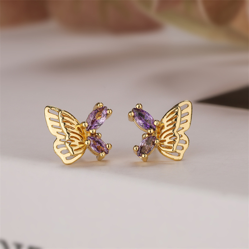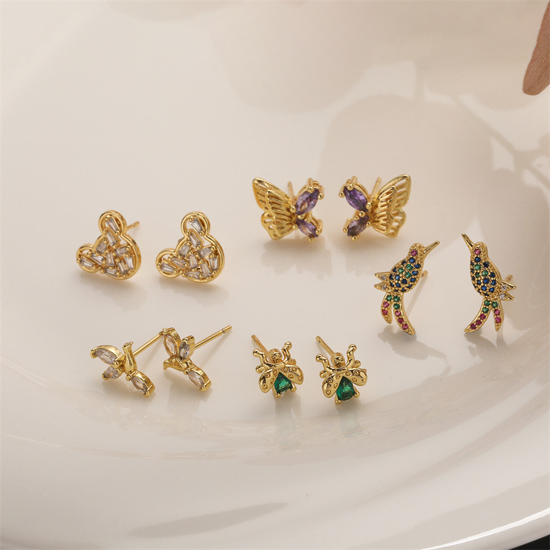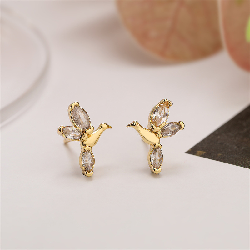 Venta caliente europea y americana transfronteriza de cobre chapado en oro pájaro mariposa Stud pendientes simple diseño de moda todo fósforo pendientes de insectos