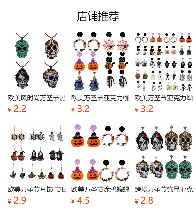 Cross-border horror fangya Halloween pendientes personalidad de la moda de acrílico pata bruja fantasma espárragos pendientes