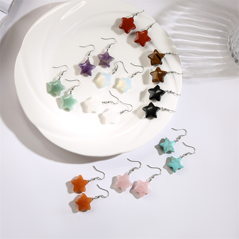 Joyería transfronteriza europea y americana de moda simple pequeña estrella pendientes mujer turquesa retro estilo étnico pendientes al por mayor