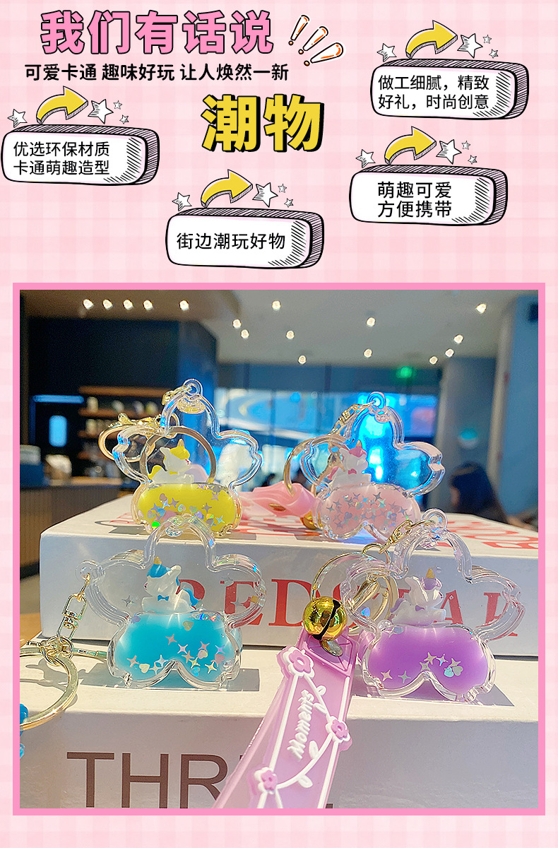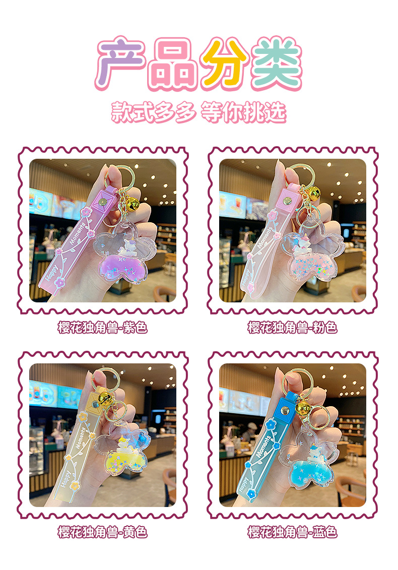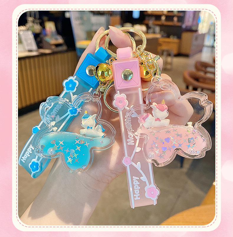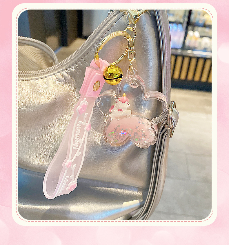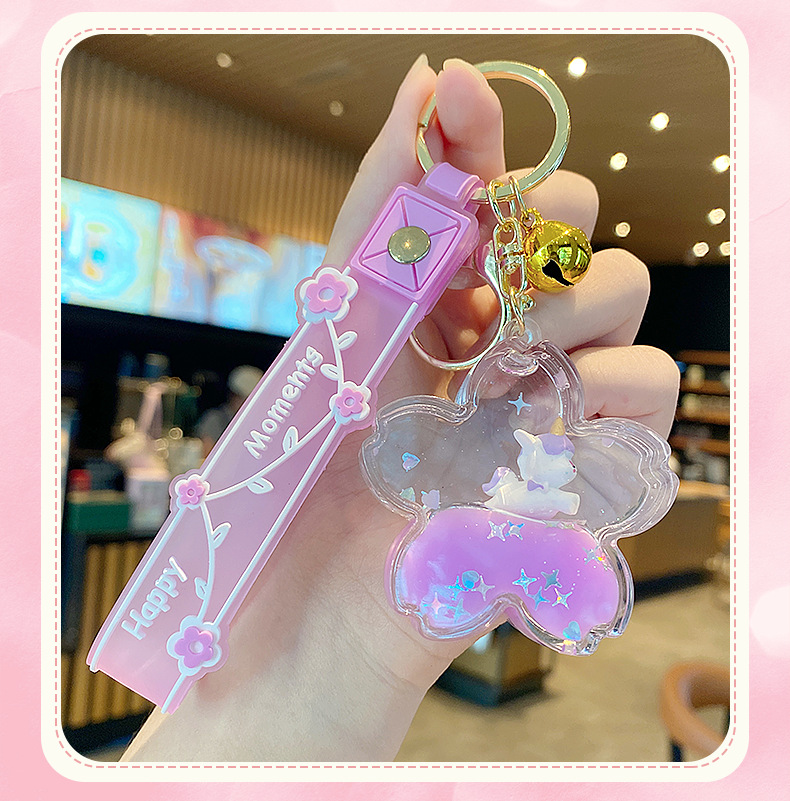 Púrpura estrella de cinco puntas líquido Quicksand llavero chica corazón flor de cerezo aceite colgante lindo tridimensional mochila adornos para mujeres