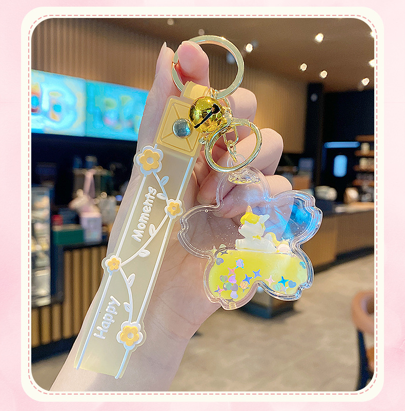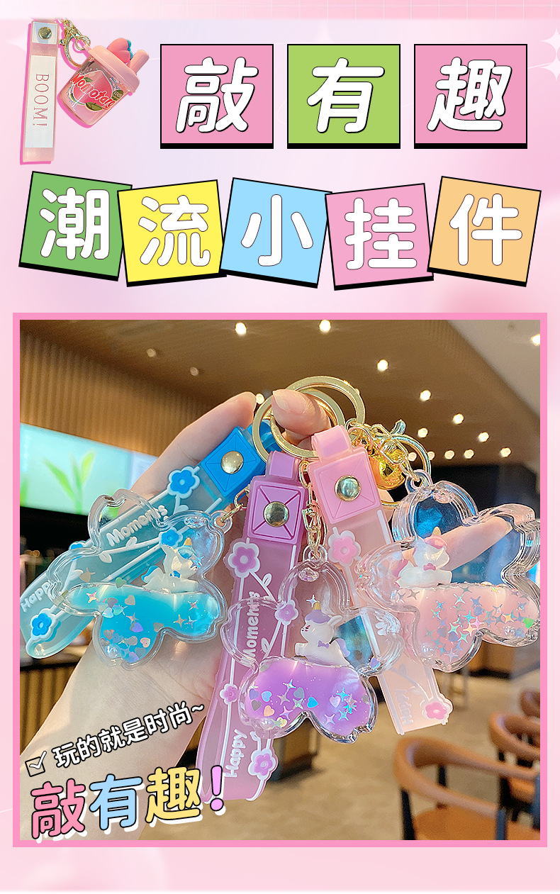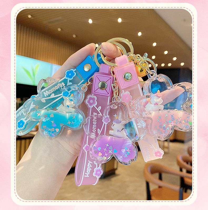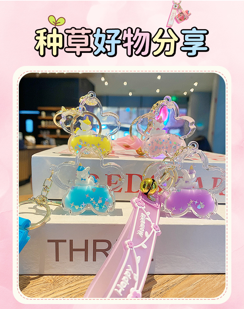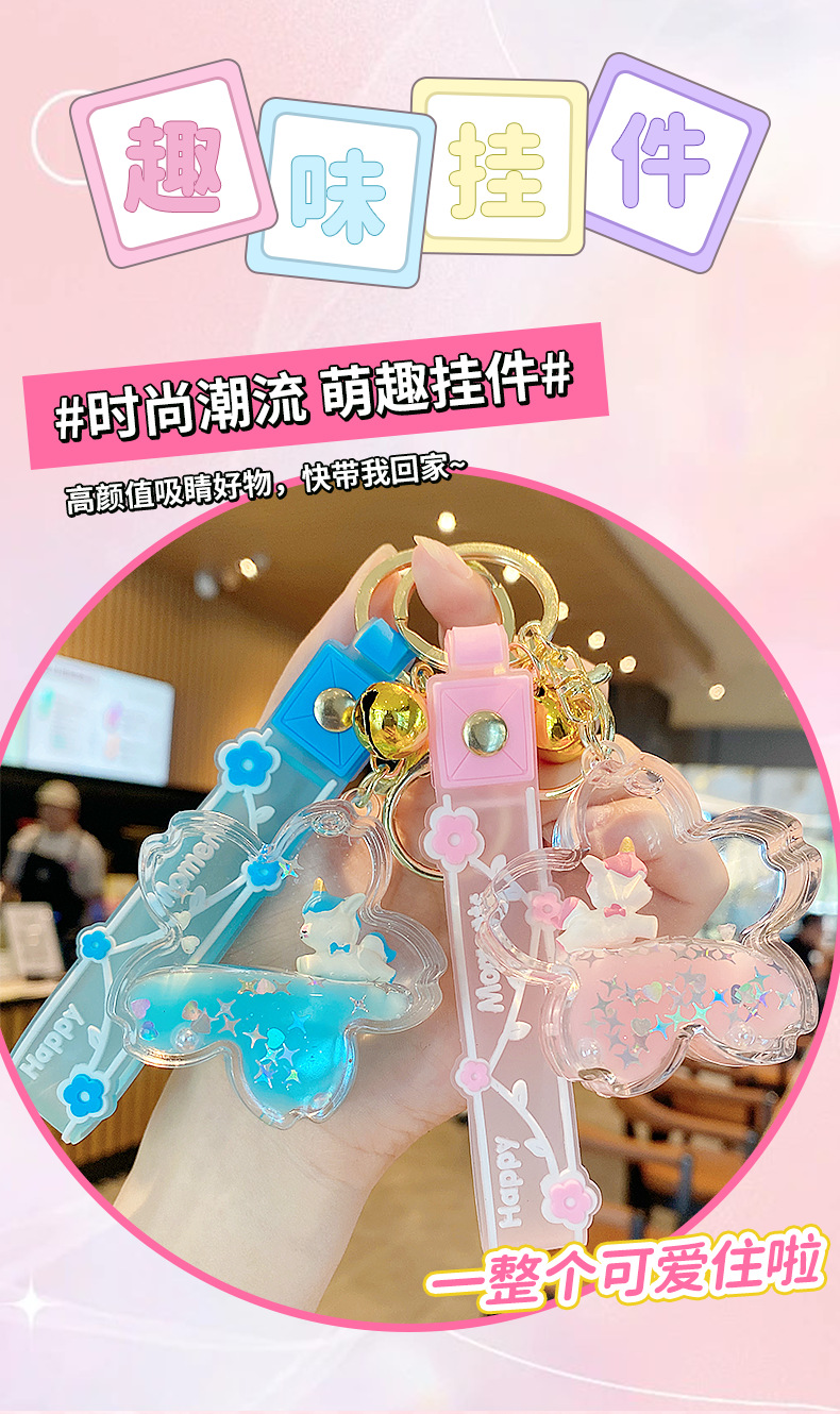 Púrpura estrella de cinco puntas líquido Quicksand llavero chica corazón flor de cerezo aceite colgante lindo tridimensional mochila adornos para mujeres