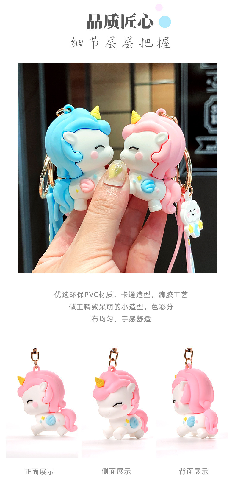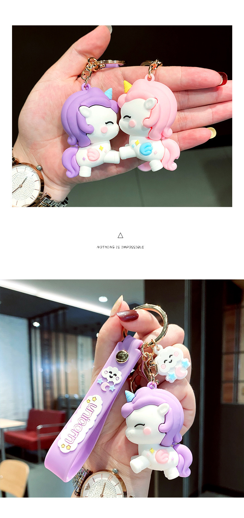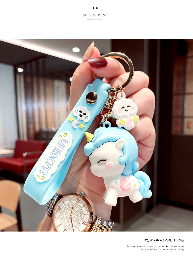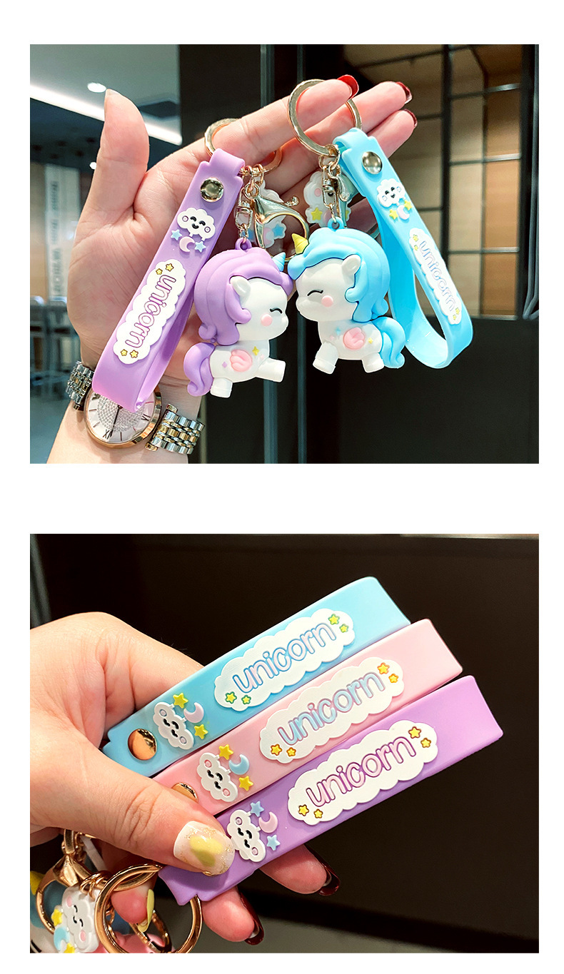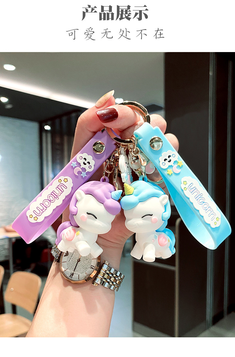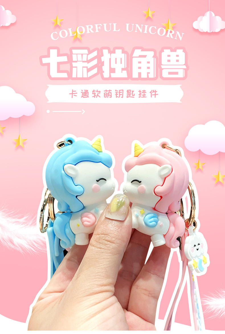 Llavero de muñeca de goma suave de dibujos animados creativo femenino lindo unicornio llavero de coche bolsa de anillo pequeño colgante regalo