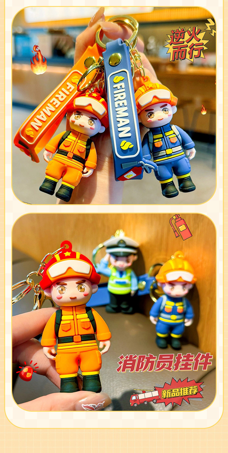 Bomberos llavero lindos bolsos colgantes decoración Día del Ejército llavero de automóviles de dibujos animados homenaje regalos de vacaciones