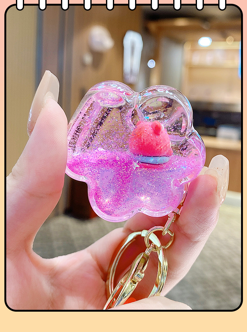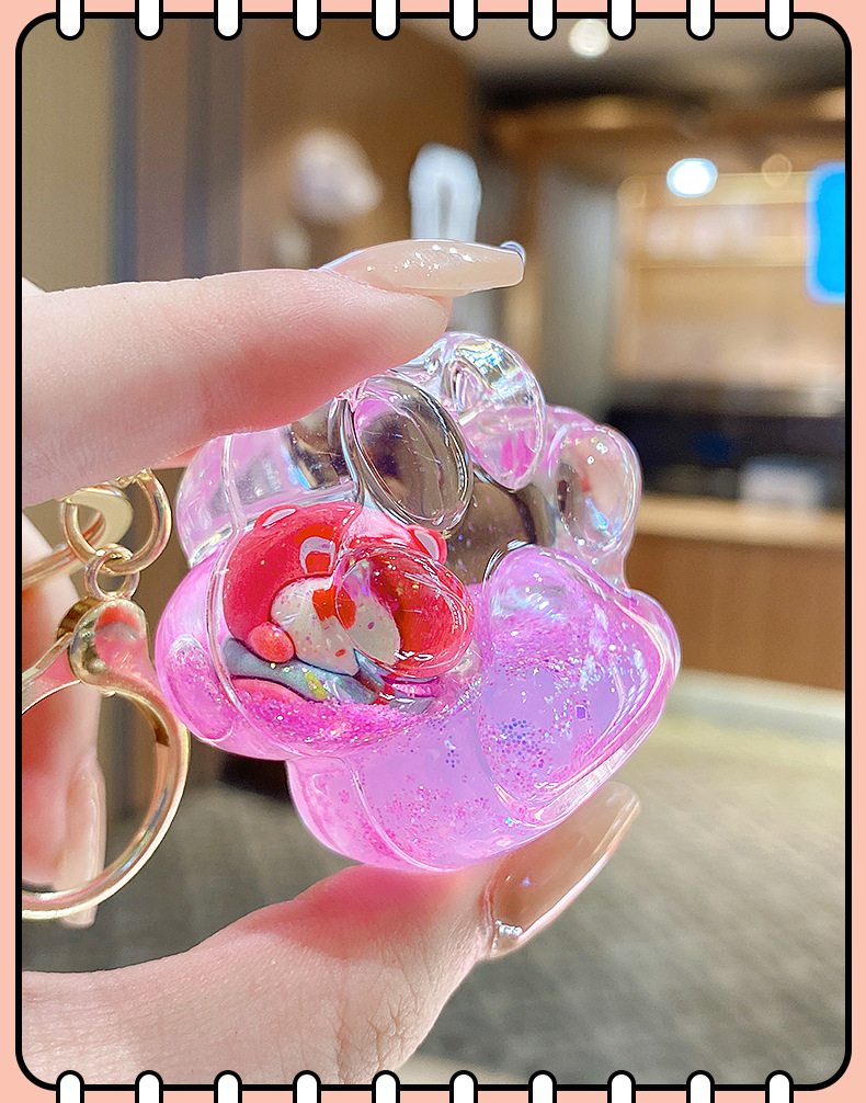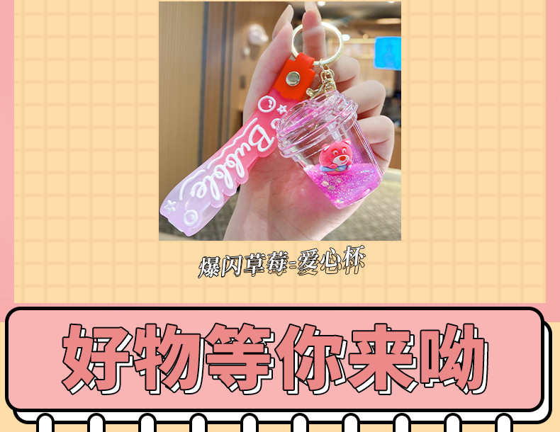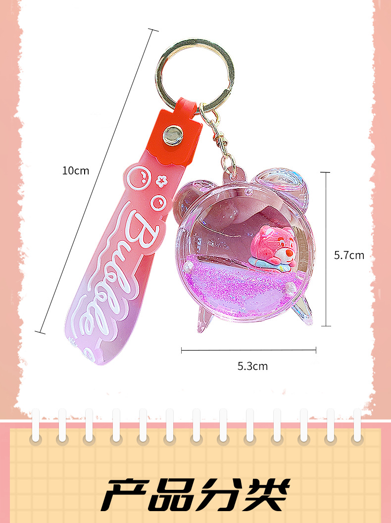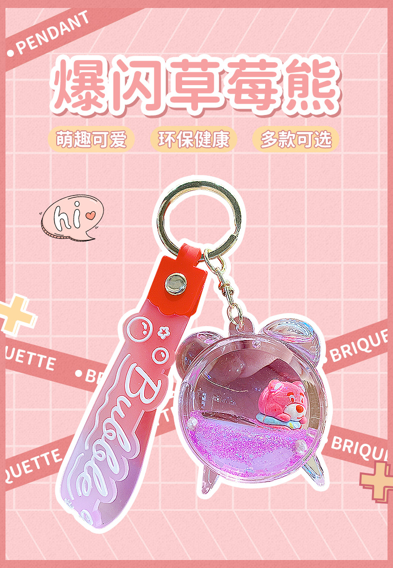 Botella de arena flotante de aceite flash fresas oso muñeca colgante llavero mochila para hombres y mujeres colgantes de automóviles pequeños regalos al por mayor