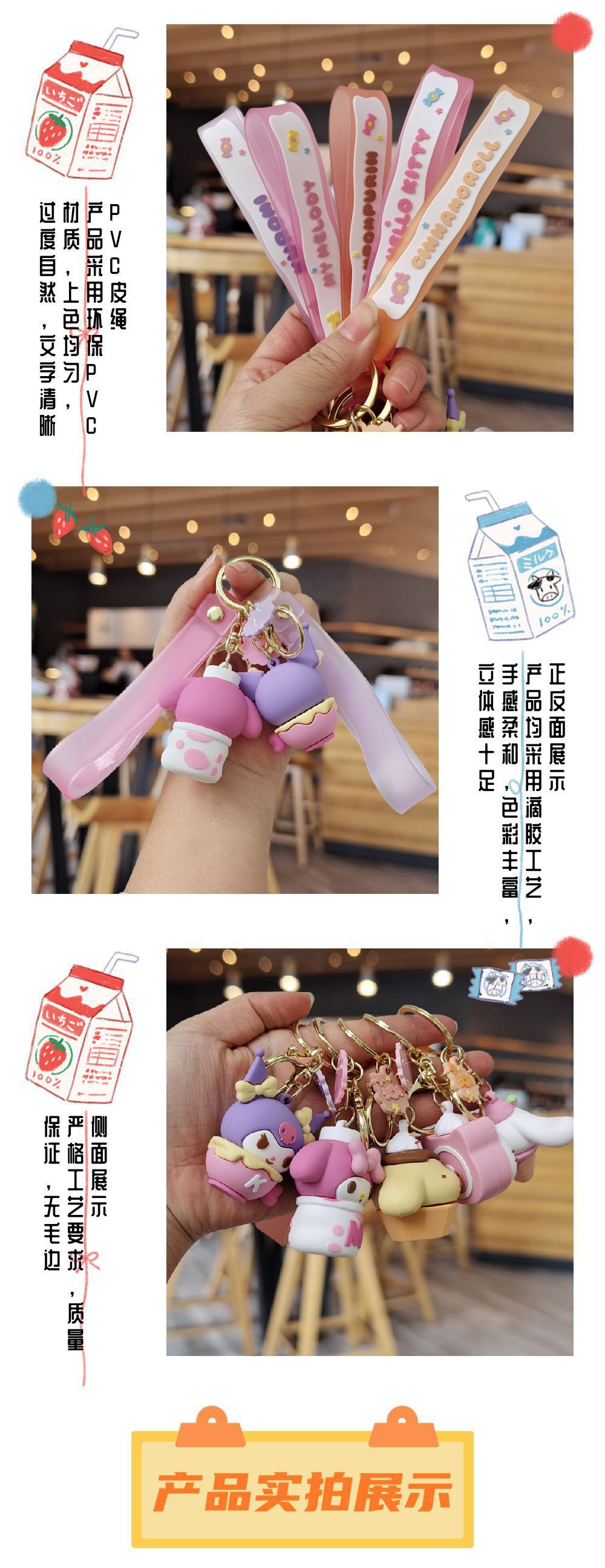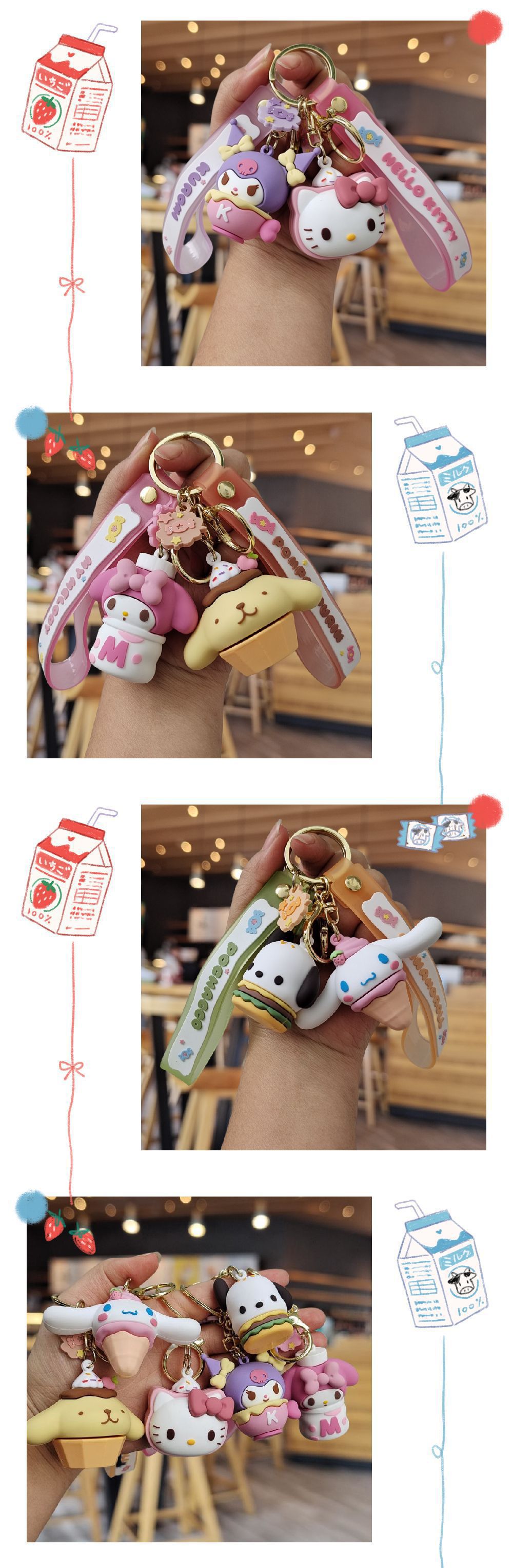 Sanrio snack familia de dibujos animados llaveros bolsas escolares colgantes muñeca máquina pequeños regalos llaveros de automóviles pequeños accesorios