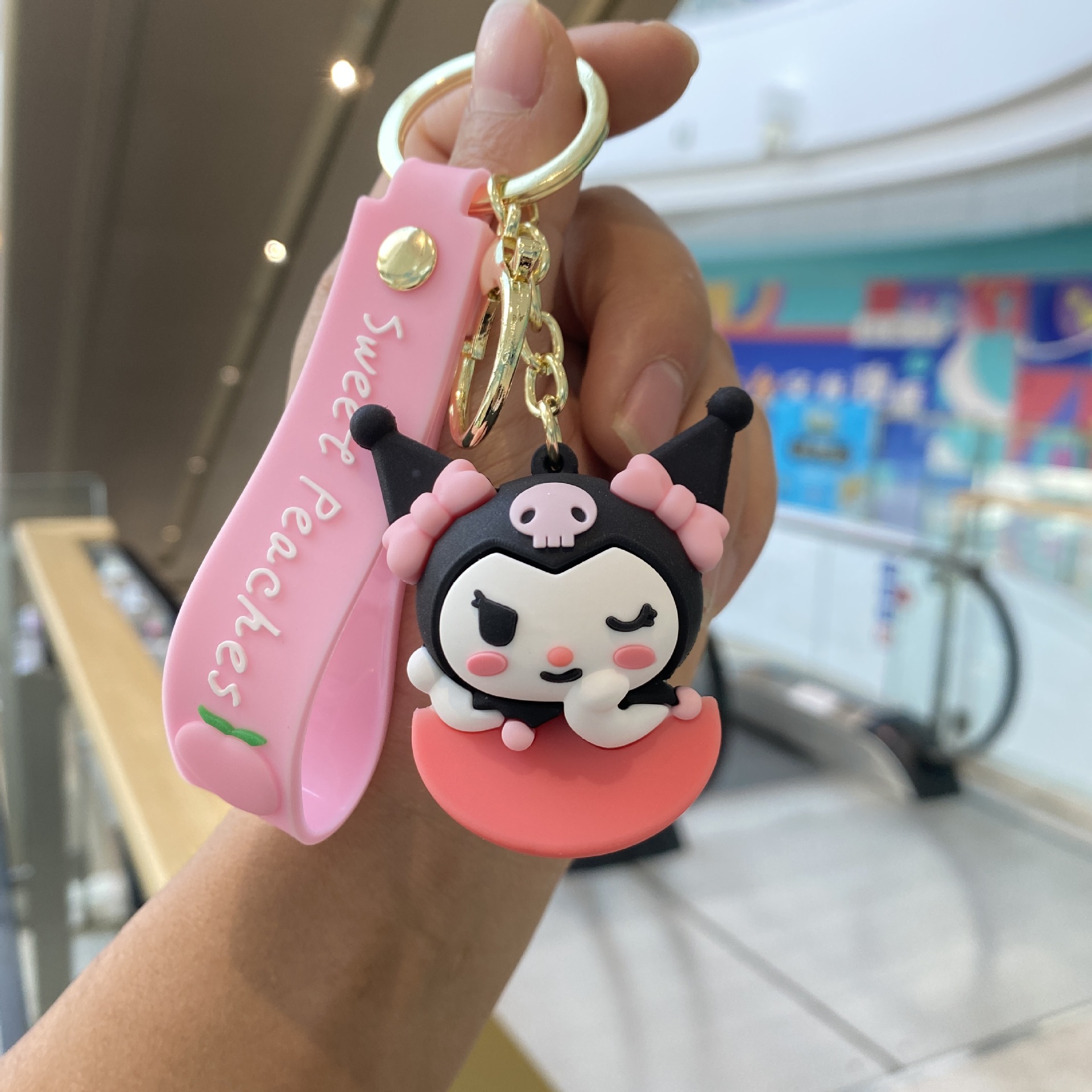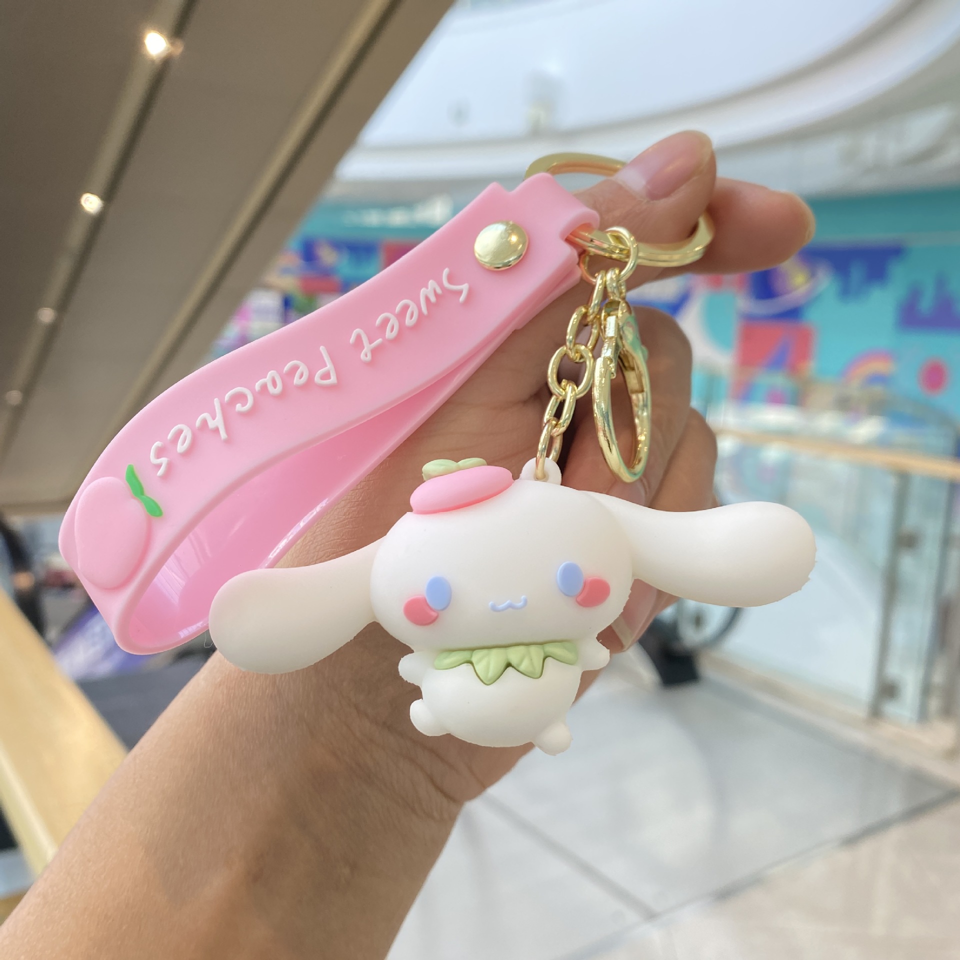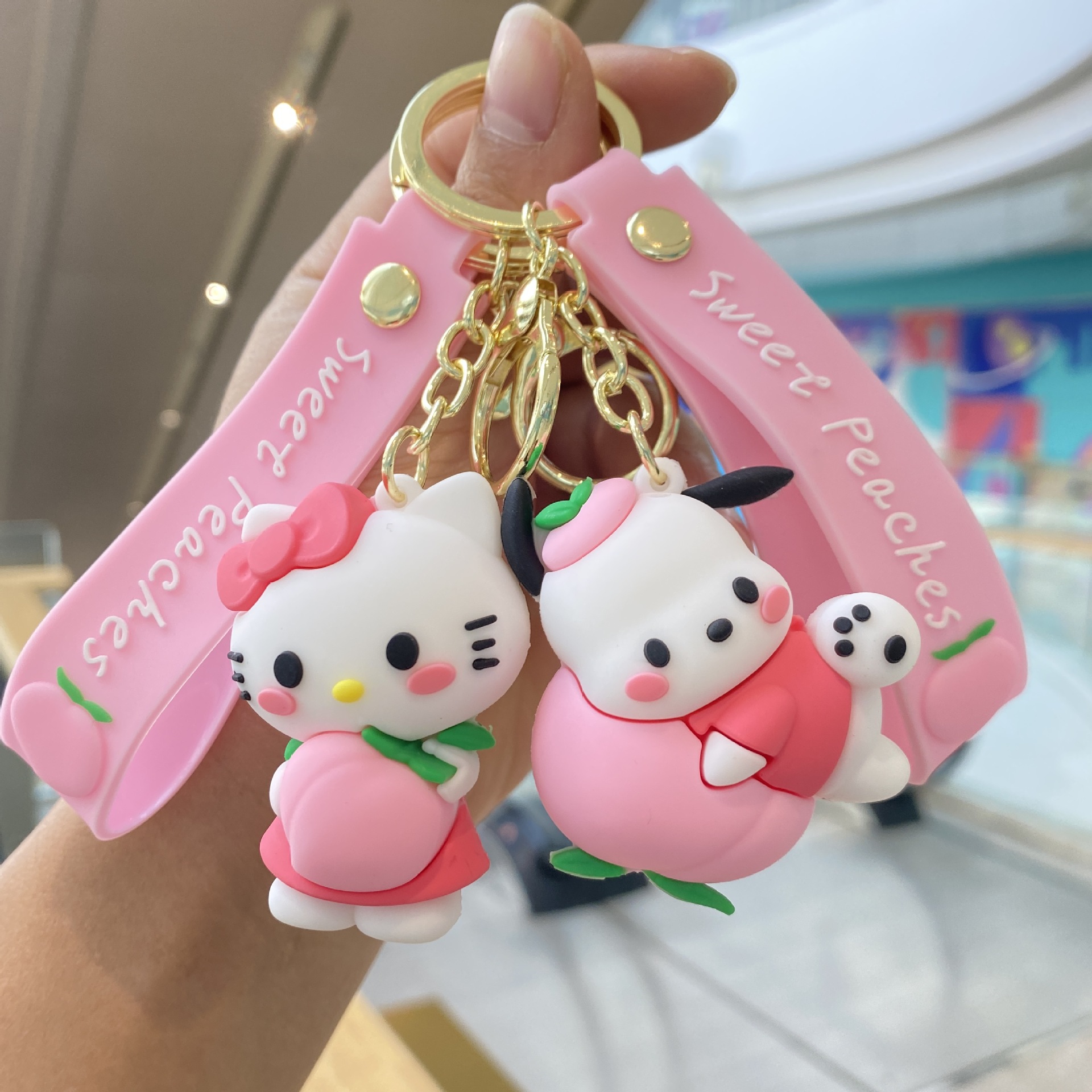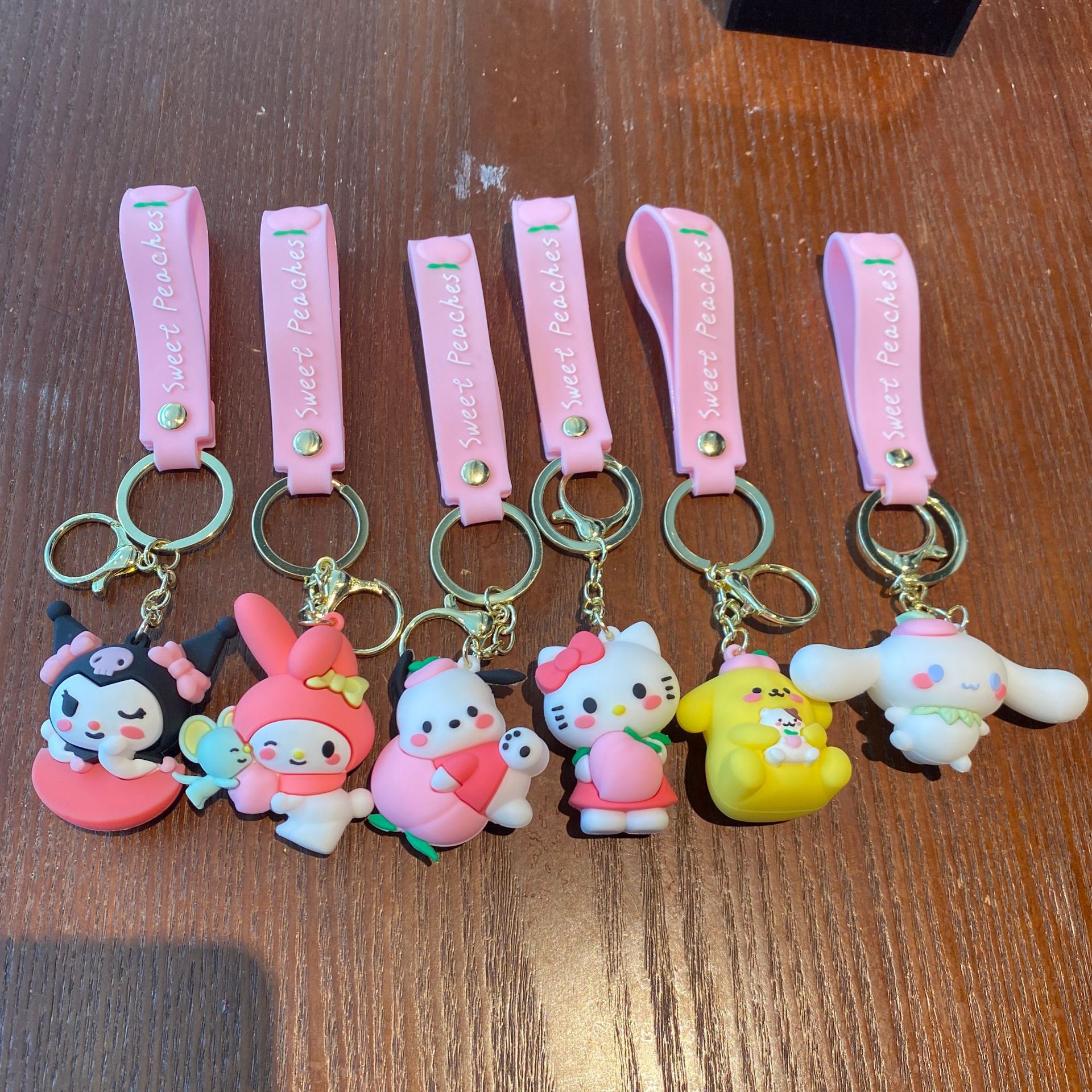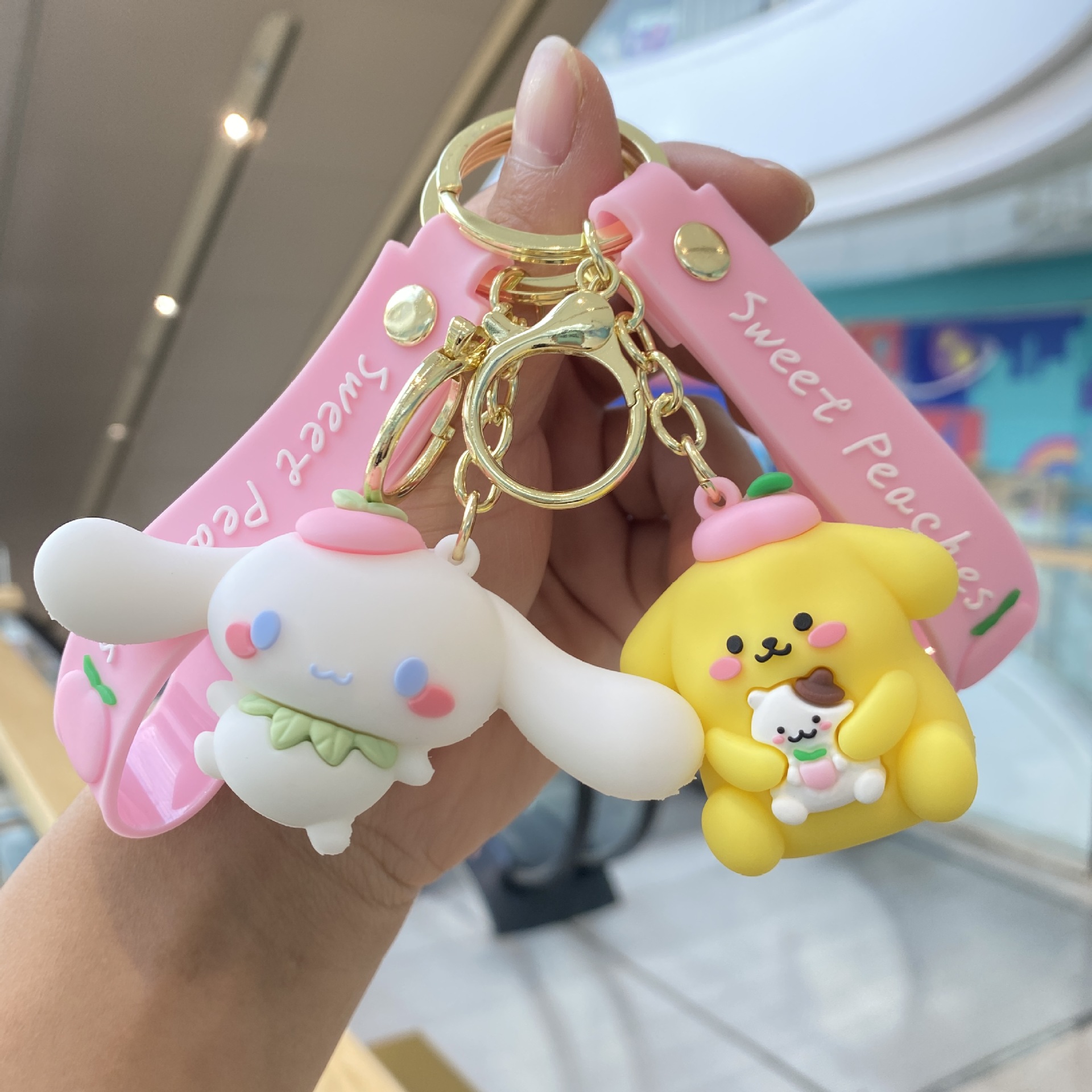 Melocotón Sanrio llavero de dibujos animados muñeca colgante pareja pequeño regalo bebé captura máquina mochila llavero al por mayor