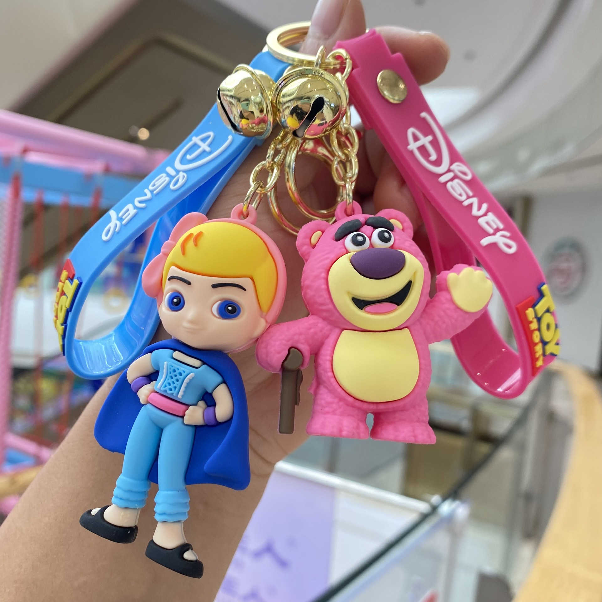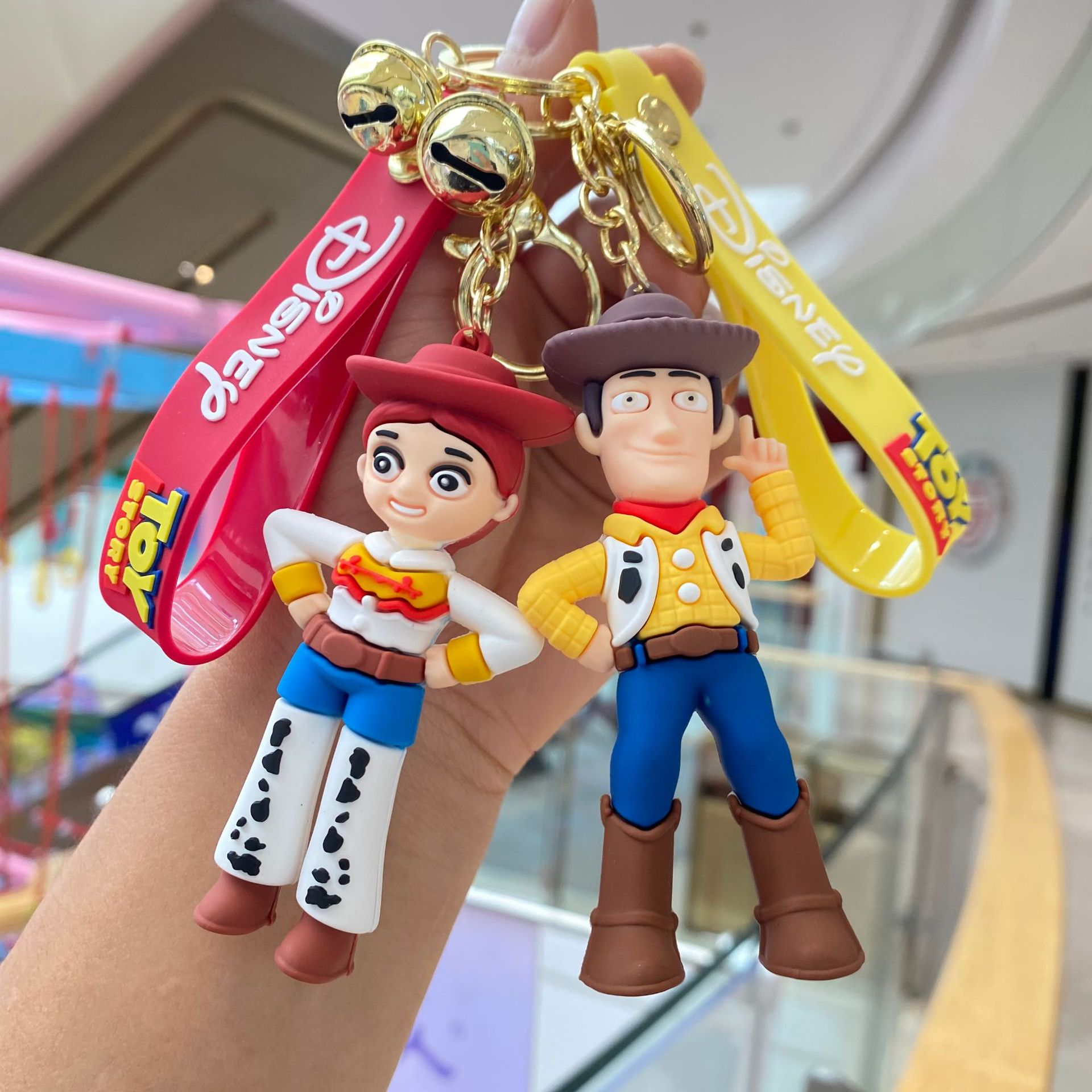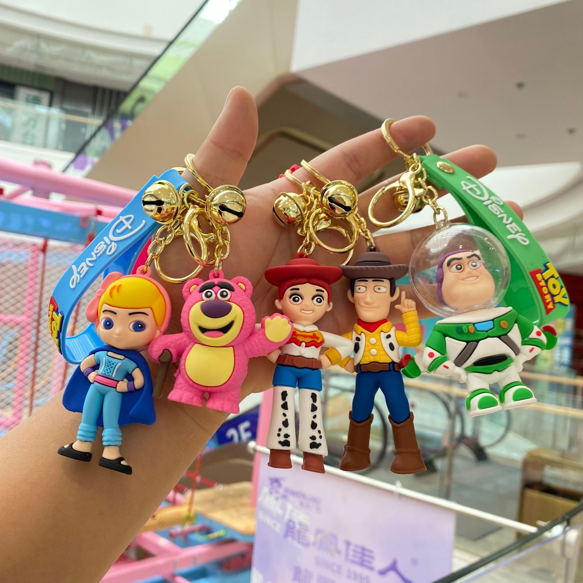 Creativo de dibujos animados juguete historia llavero lindo Denim Woody Buzz Lightyear fresa oso llavero al por mayor