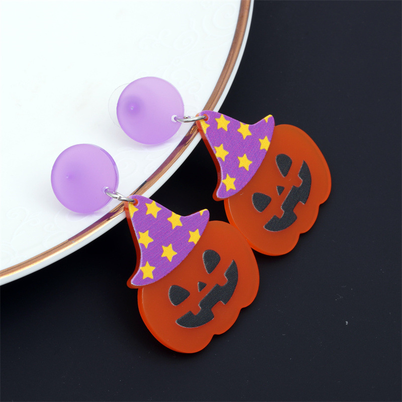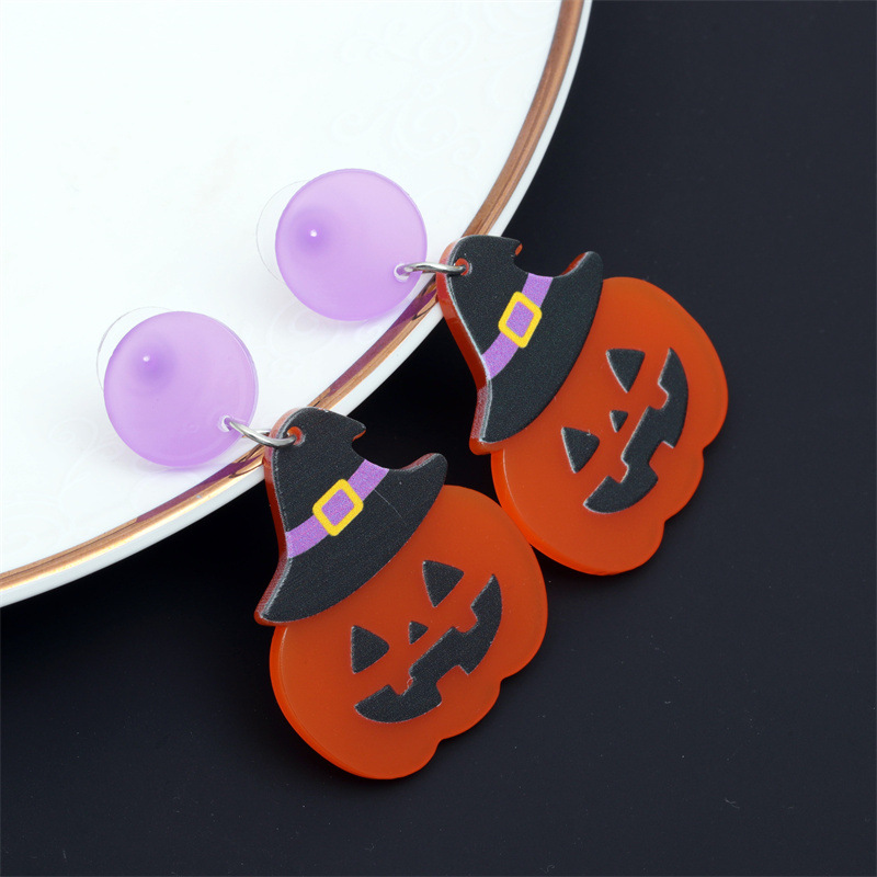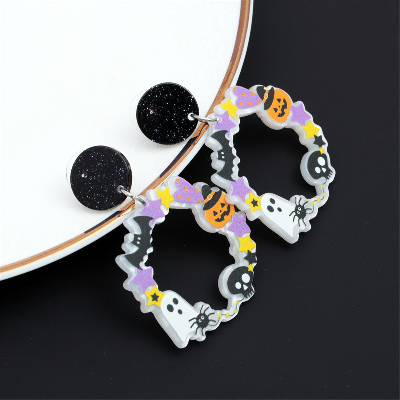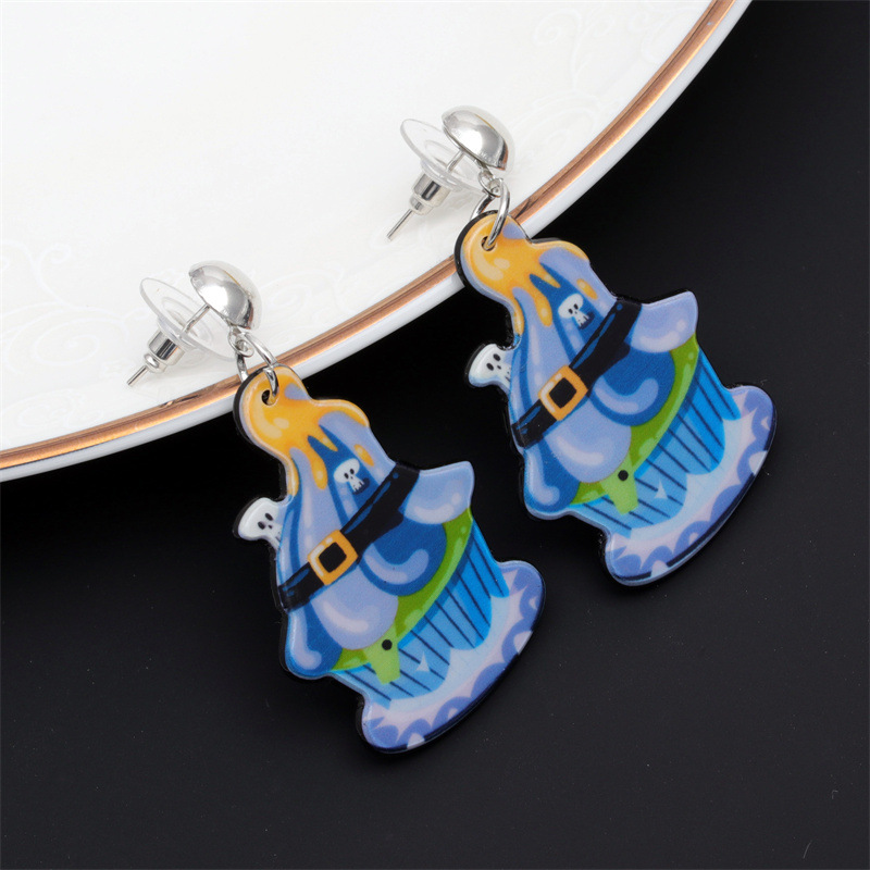 Europa y América de Halloween acrílico araña fantasma pendientes personalizado gato calabaza dibujos animados pendientes joyería de vacaciones