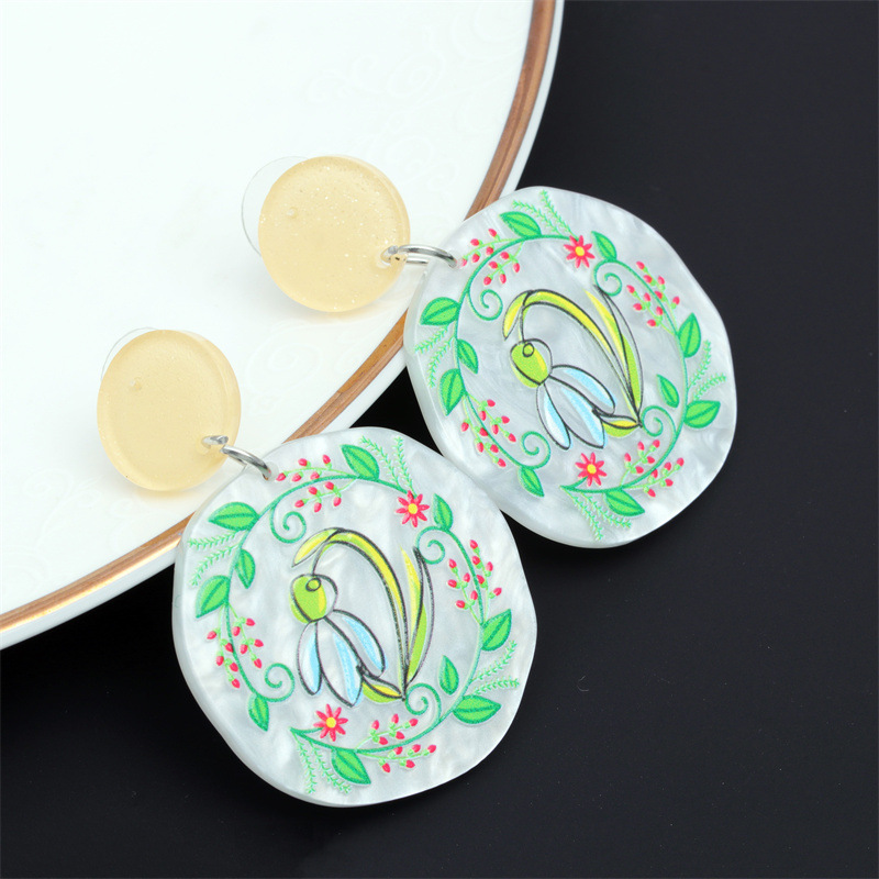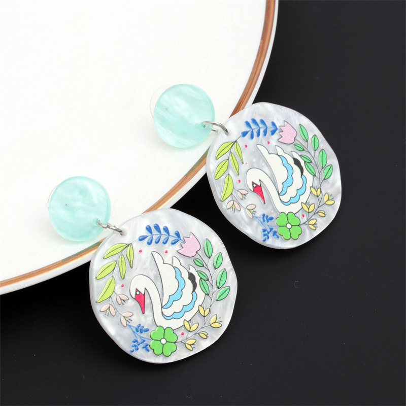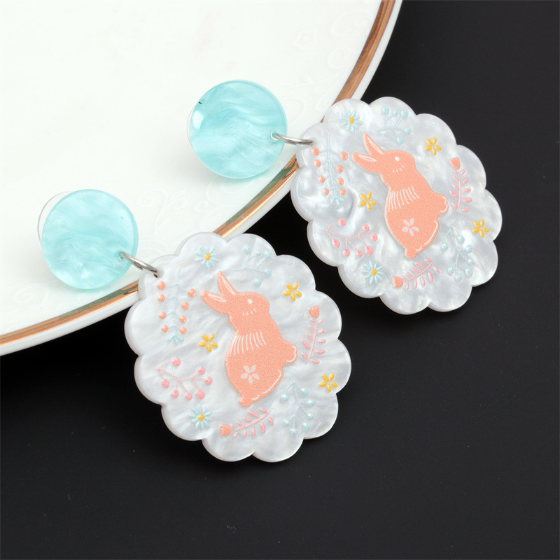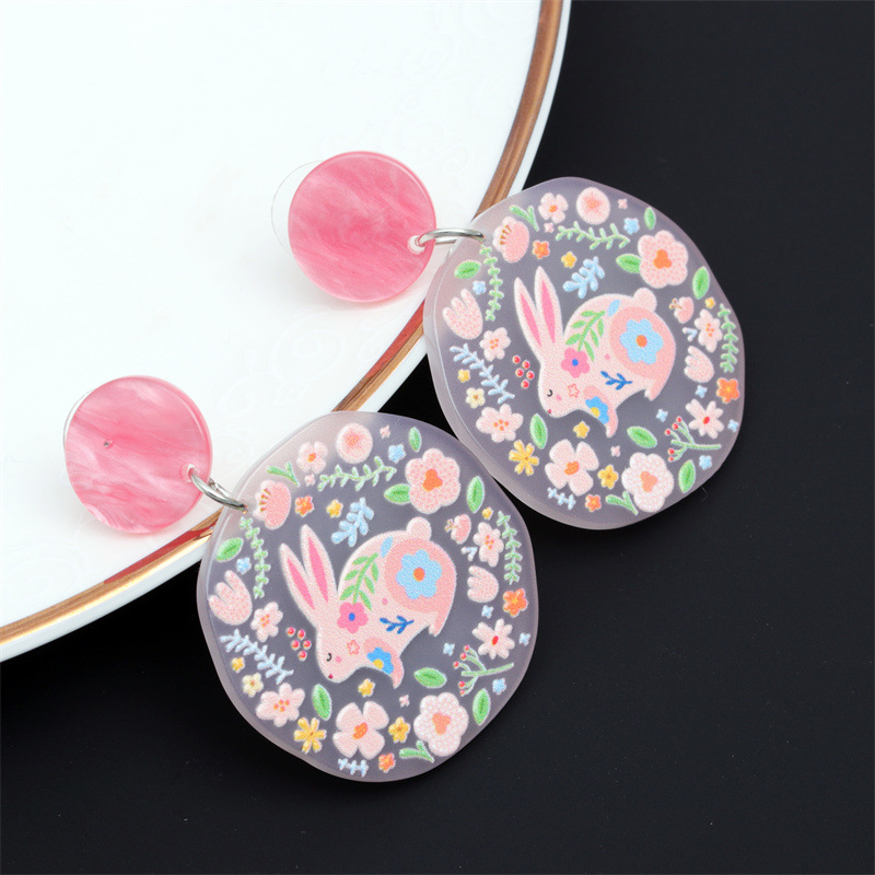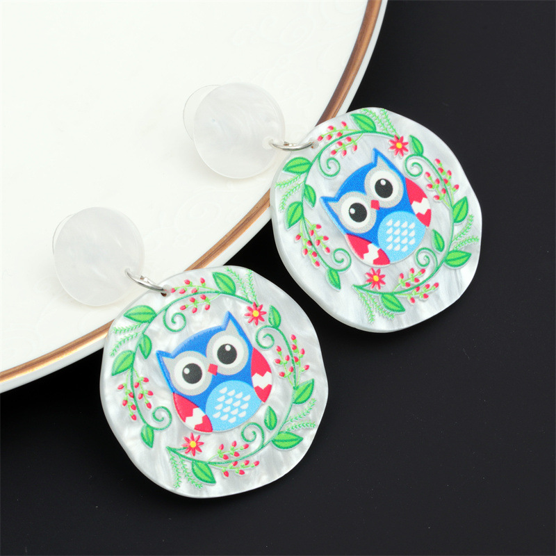 Joyería de moda transfronteriza europea y americana acrílico fresco búho conejo Stud pendientes flor acetato pendientes redondos