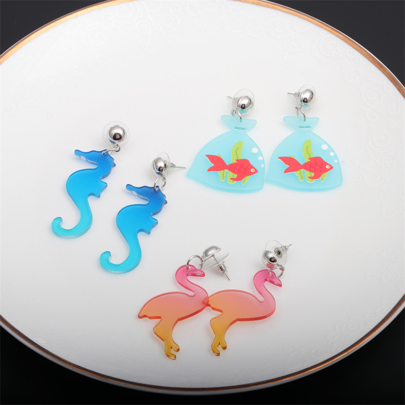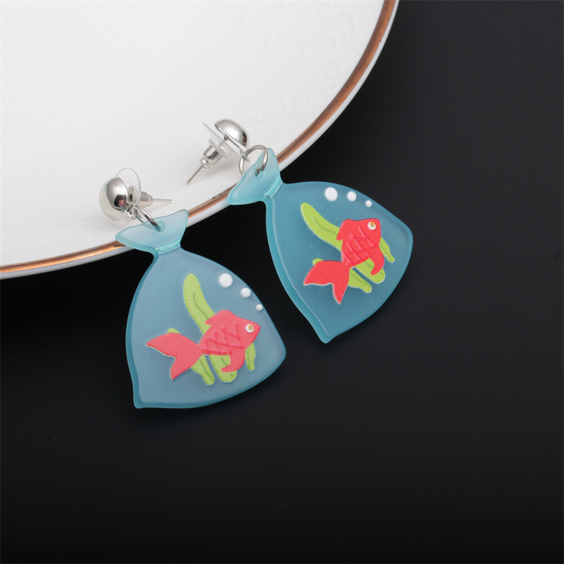 Europeo y americano transfronterizo verano tridimensional acrílico animal Stud pendientes hembra Goldfish haima pendientes femeninos
