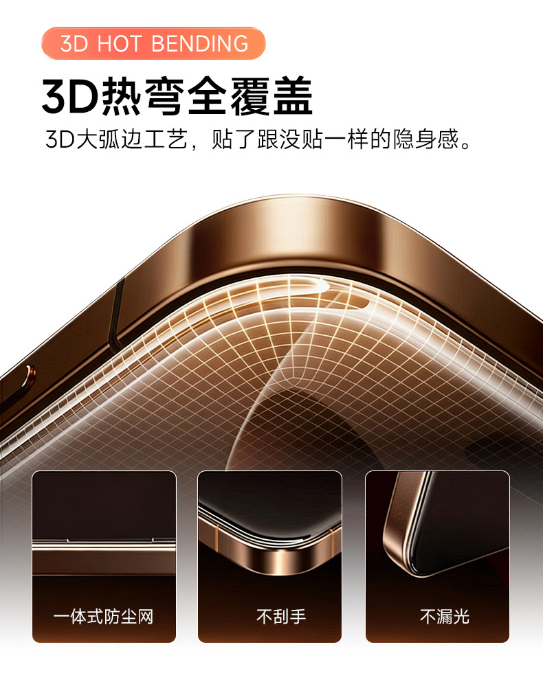Aplicable a Apple 17 curva 3D curva en caliente caucho completo cámara limpia de polvo para teléfonos móviles pantalla curva a prueba de polvo a prueba de roturas de borde de la película de endurecimiento para teléfonos móviles