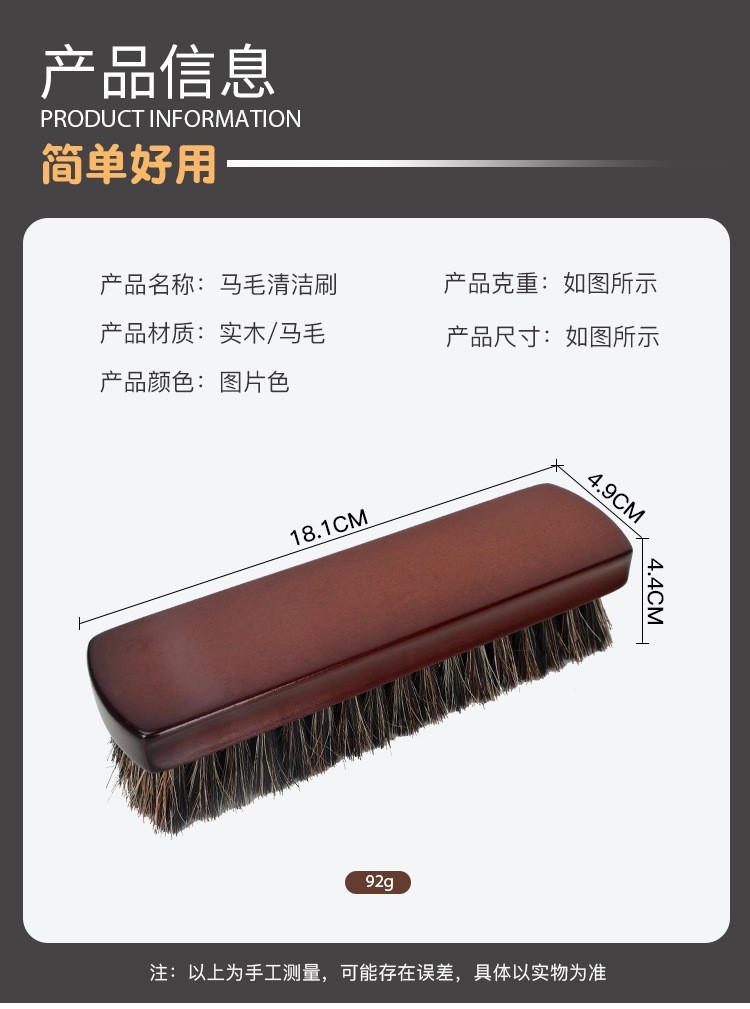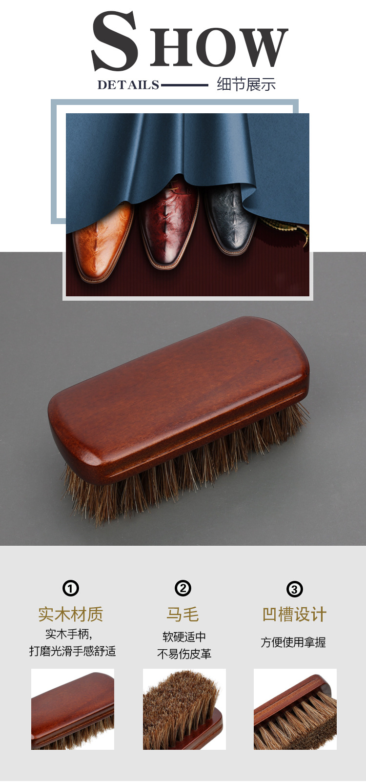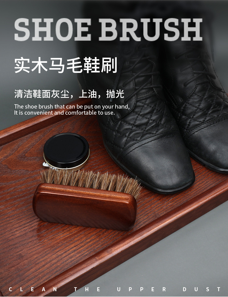 Cepillo de pelo de caballo Yingte, pulido de aceite, eliminación de polvo, cepillo de zapatos de cuero de piel suave, cepillo de limpieza de melena de madera maciza para el hogar, cepillo de zapatos