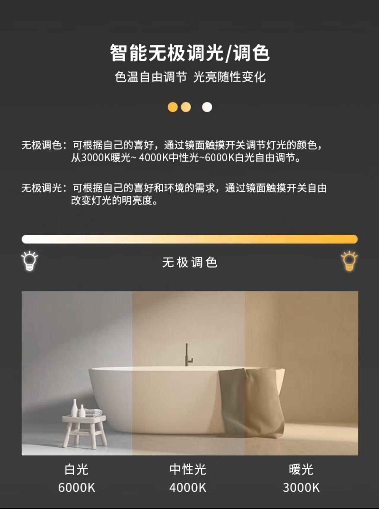 | Colores | Control por cable [se ilumina cuando está enchufado],Interruptor táctil + luz blanca,Interruptor táctil + luz cálida,Interruptor táctil + luz neutra,Interruptor táctil + luz tricolor,Interruptor táctil + luz blanca + desempañado,Interruptor táctil + luz cálida + desempañado,Interruptor táctil + luz neutra + desempañado,Interruptor táctil + luz tricolor + desempañador,Interruptor táctil + luz blanca + desempañado + visualización de la hora,Interruptor táctil + luz cálida + desempañado + visualización de la hora,Interruptor táctil + luz neutra + desempañado + visualización de la hora,Interruptor táctil + luz tricolor + desempañador + visualización de la hora,Sensor de cuerpo humano + interruptor táctil + luz tricolor,Sensor de presencia + interruptor táctil + luz tricolor + desempañador,Sensor de presencia + interruptor táctil + luz tricolor + desempañador + visualización de la hora |
