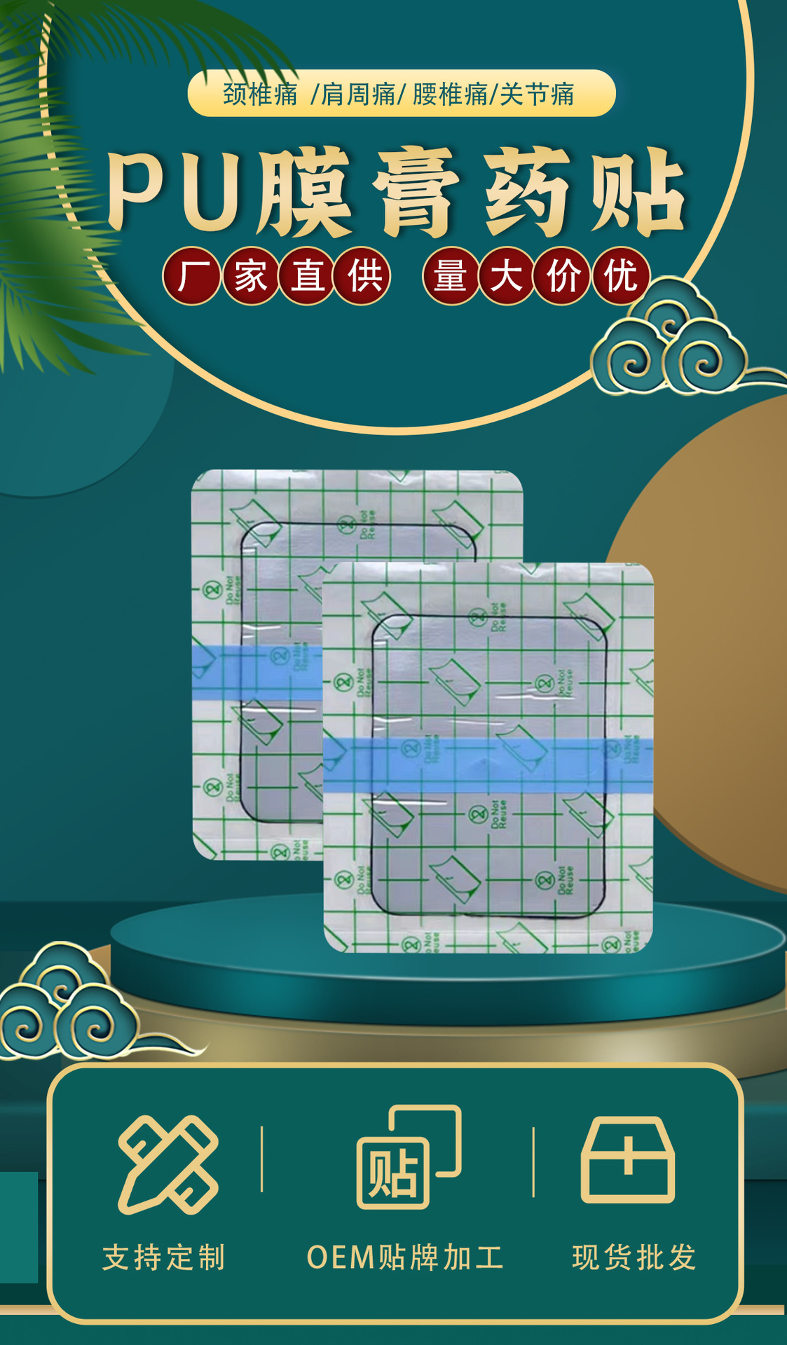 Parche de yeso impermeable de película de PU al por mayor del fabricante, parche de yeso tradicional anti-sudor para cuello, hombros, cintura, piernas, dolor en las articulaciones, parche desnudo.