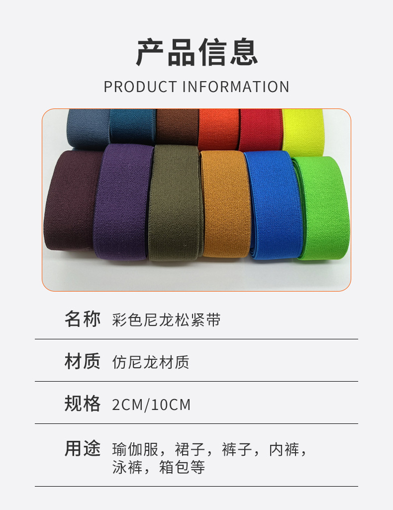 2 - 10cm de color elástico de nylon twill yoga cinturón de cinturón de cinta negro y blanco engrosado cinta elástica de nylon