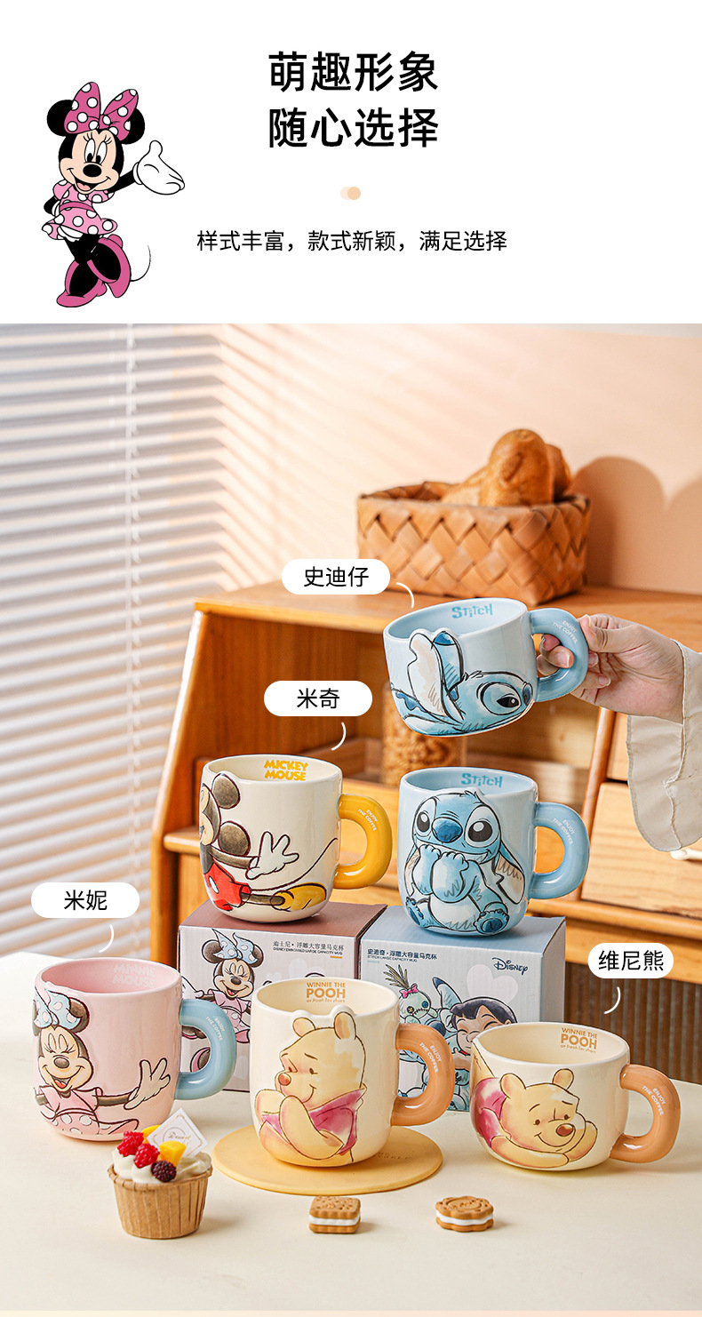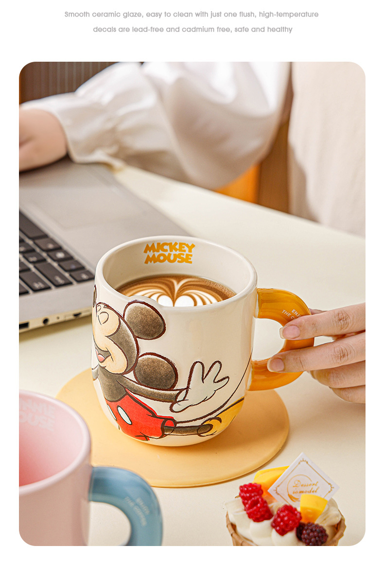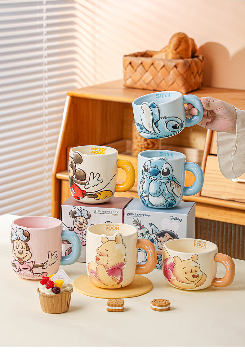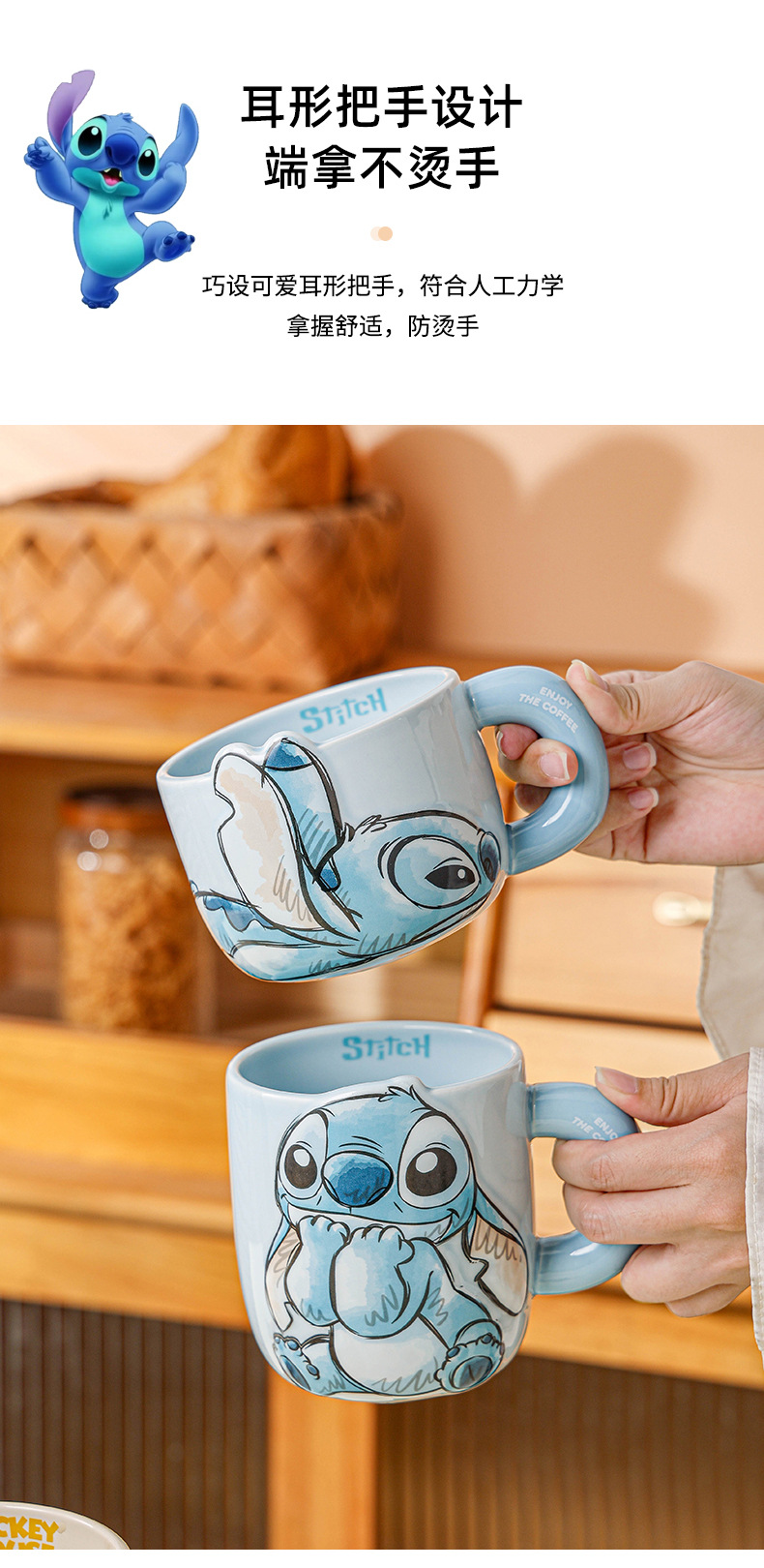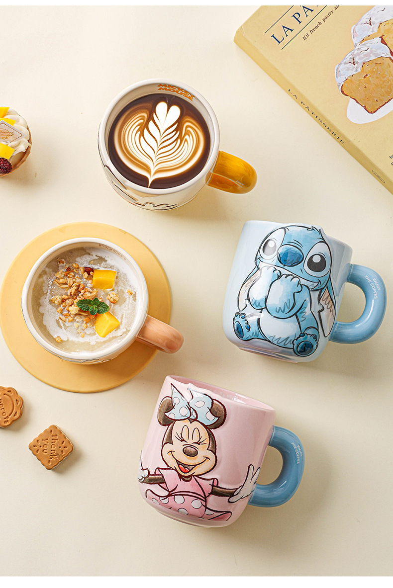 Taza de cerámica en relieve de Disney Stitch Taza para el hogar de dibujos animados altos Regalo de cumpleaños Taza de café con leche