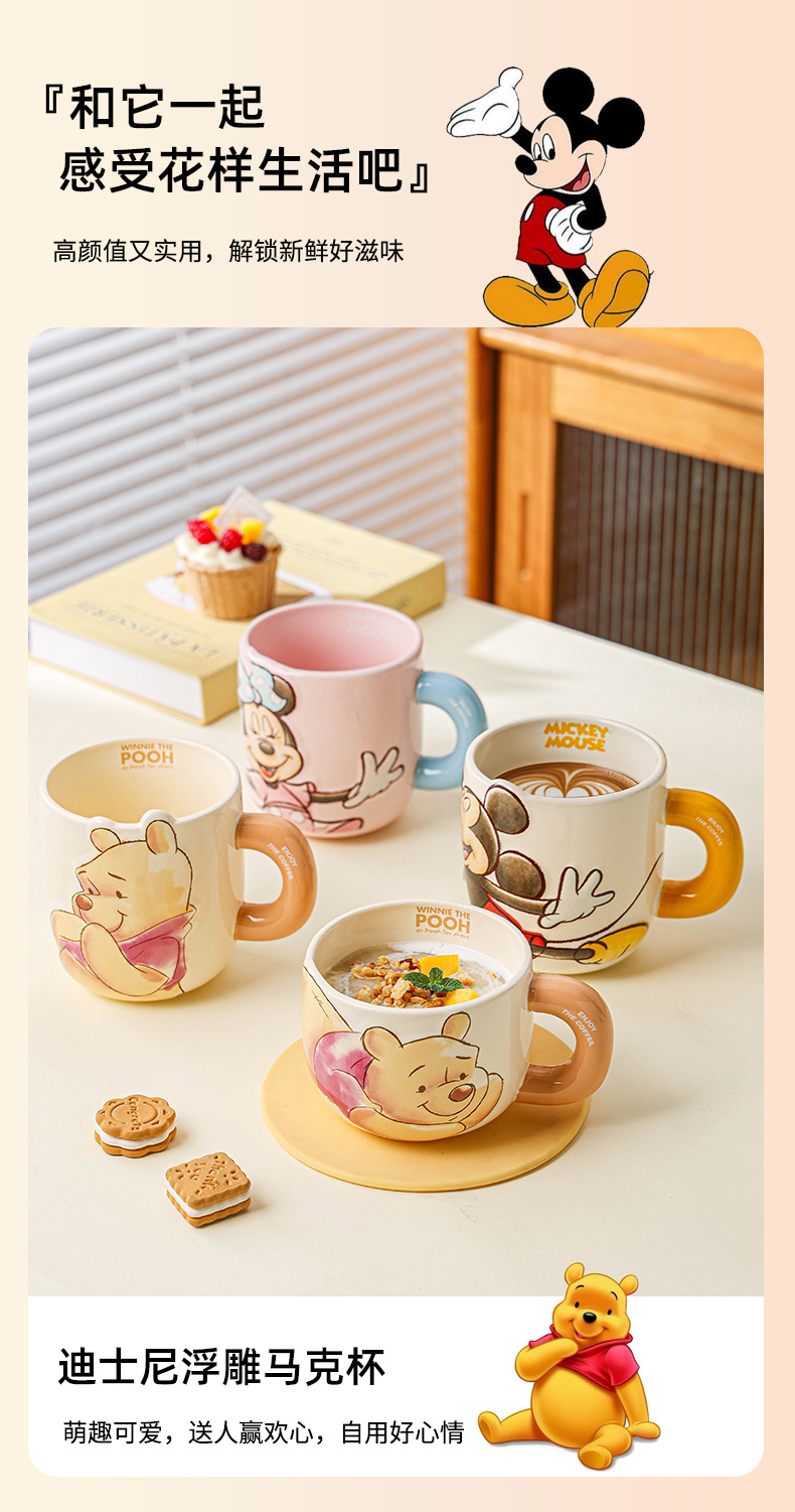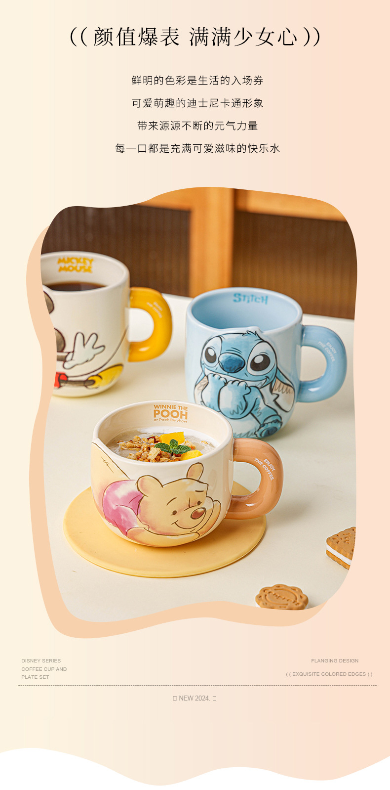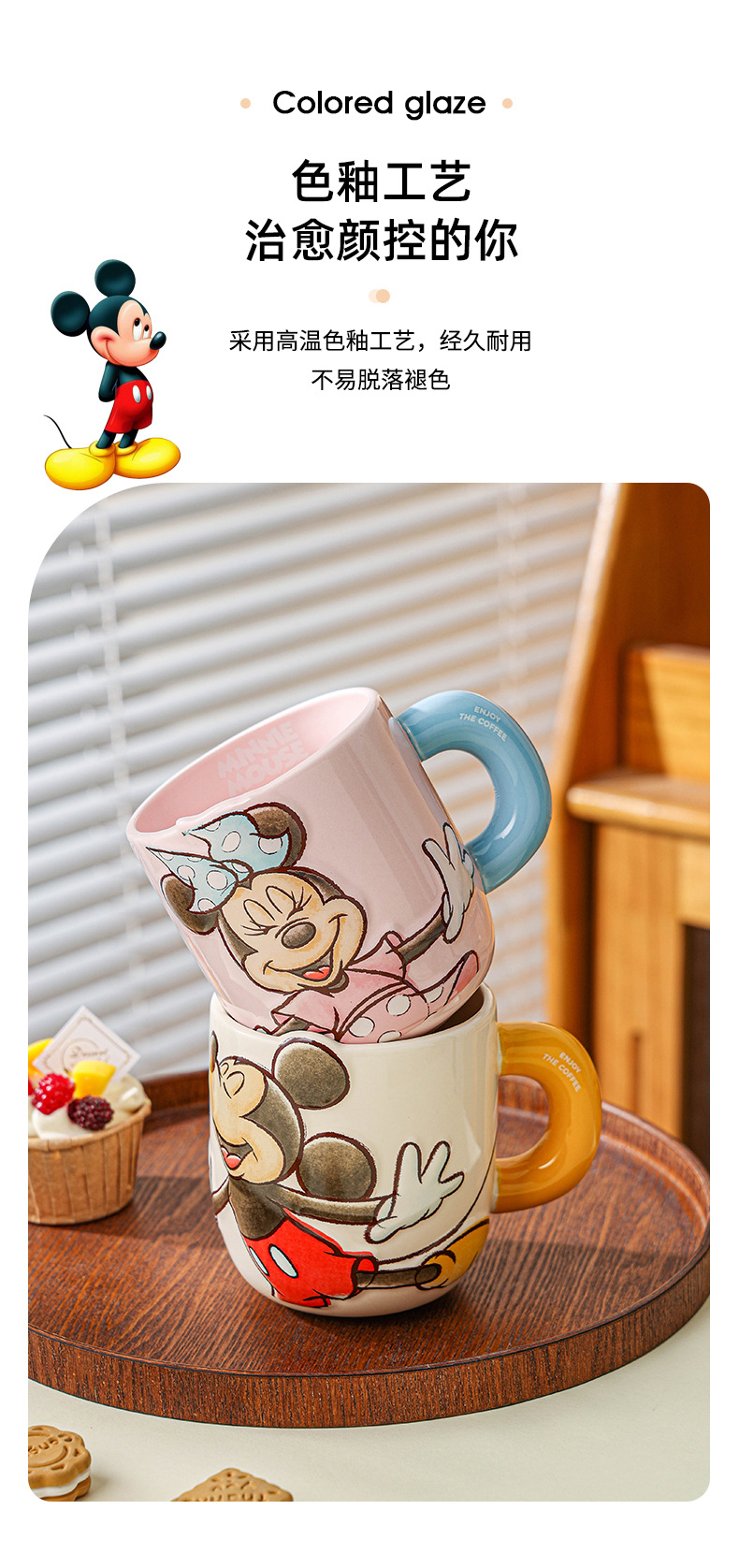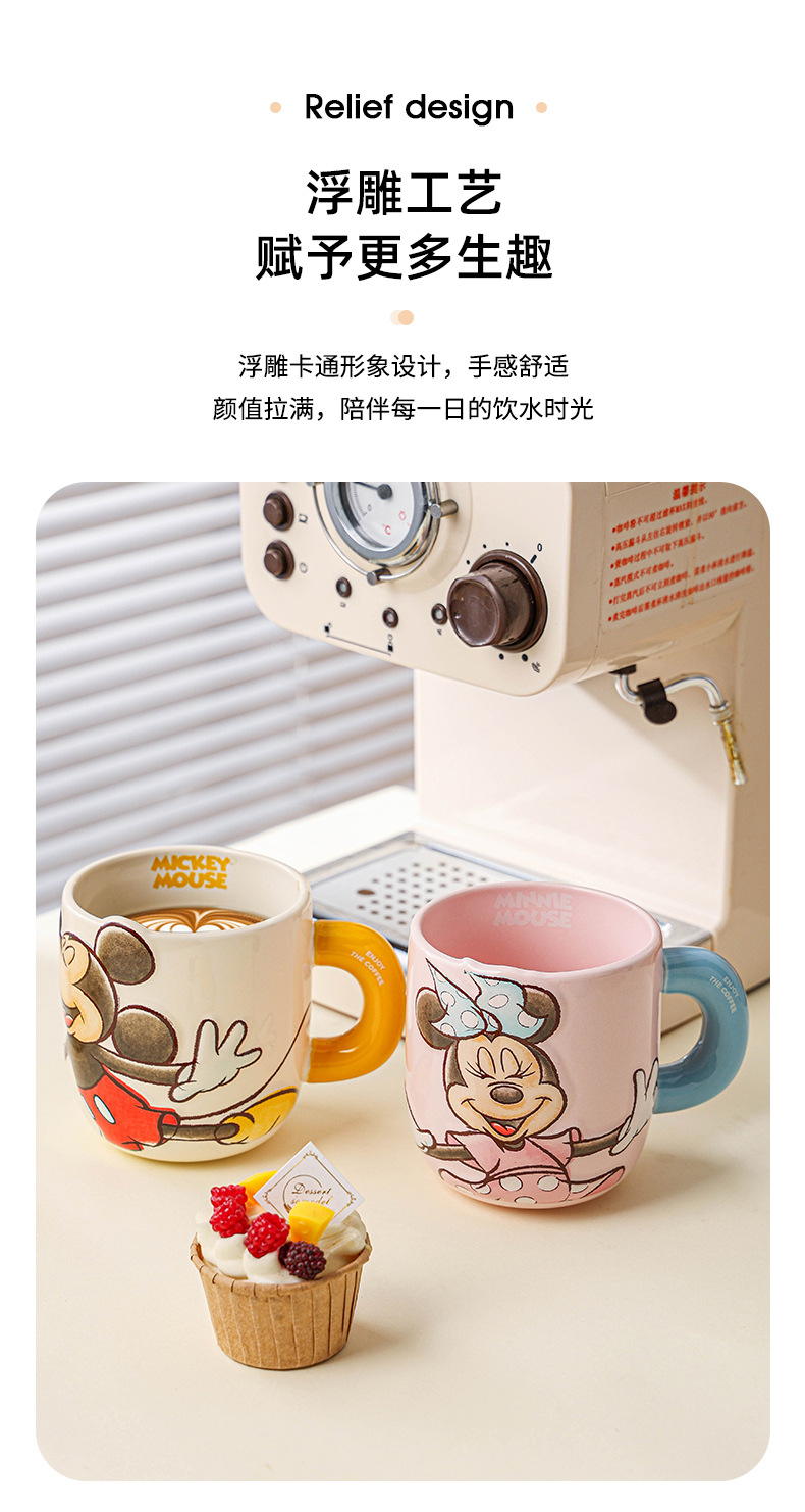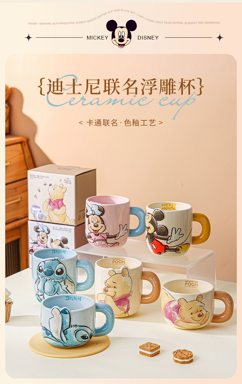 Taza de cerámica en relieve de Disney Stitch Taza para el hogar de dibujos animados altos Regalo de cumpleaños Taza de café con leche