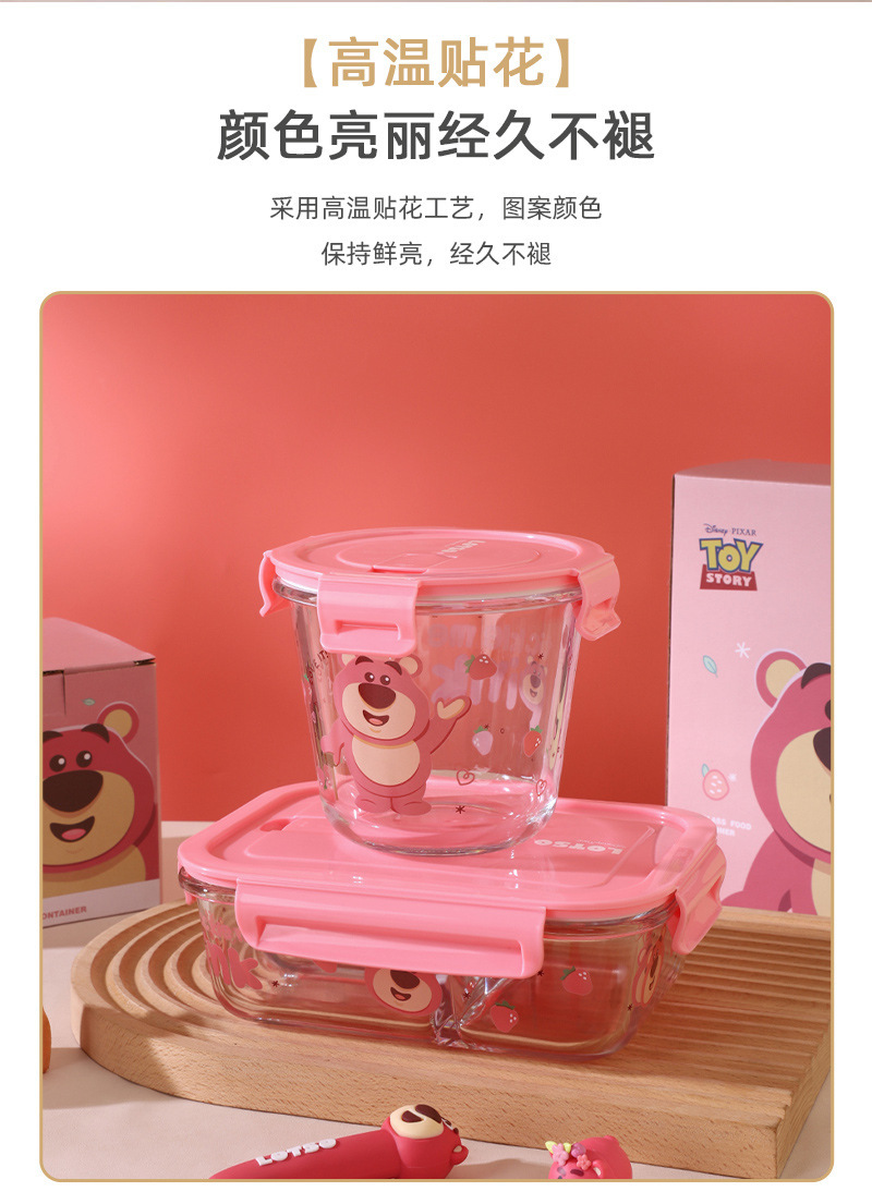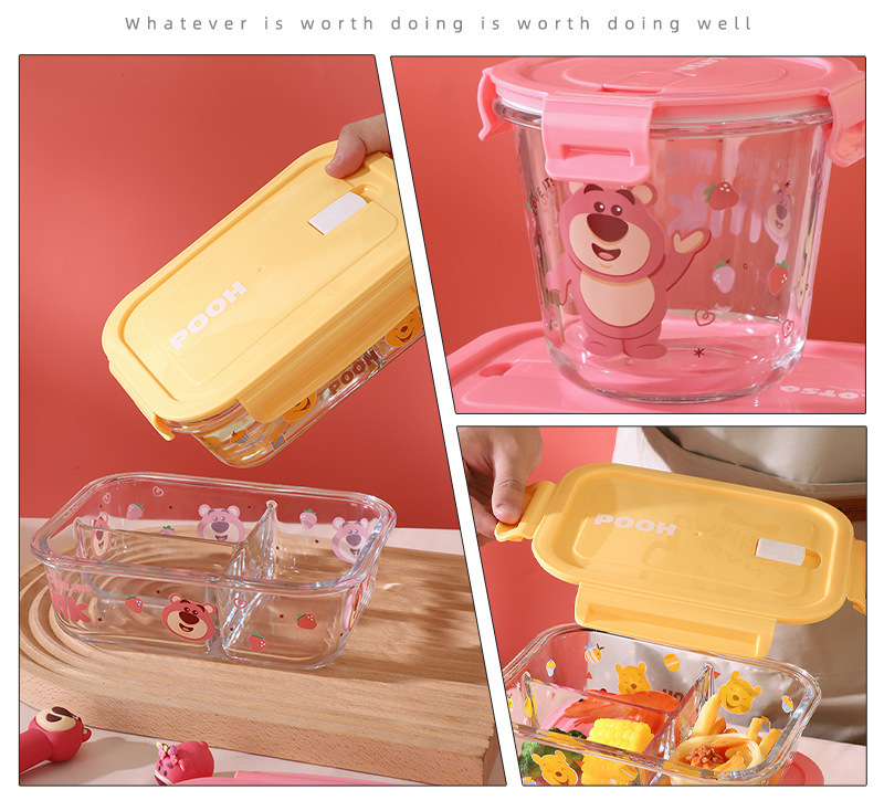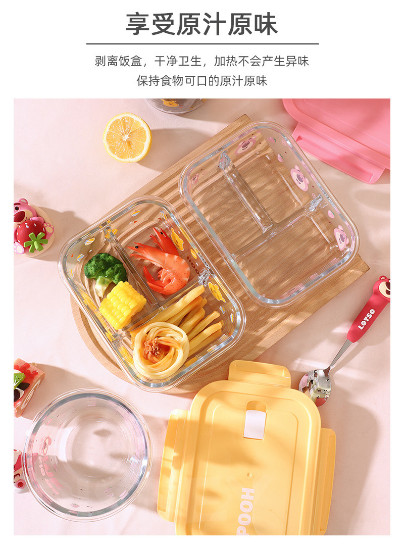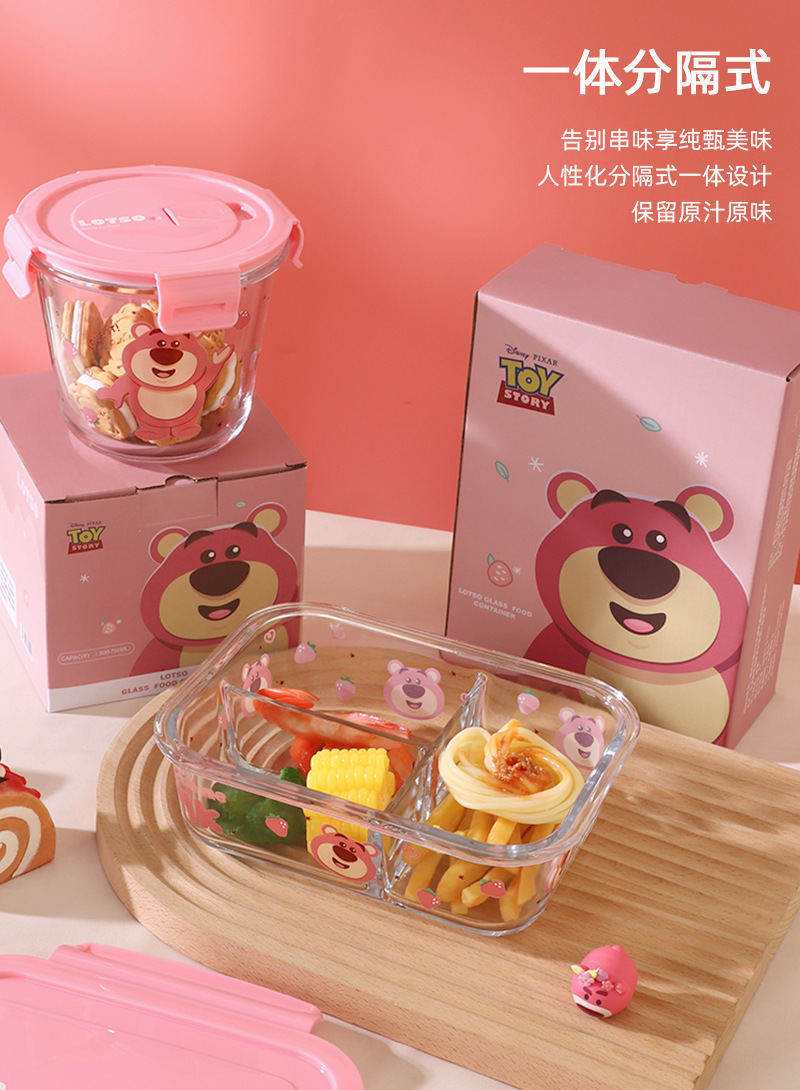 Disney Genuine Strawberry Bear Vidrio de borosilicato de tres compartiones Fiambrera Caja de regalo especial para horno microondas doméstico