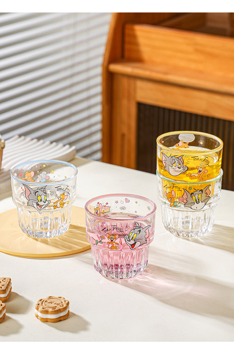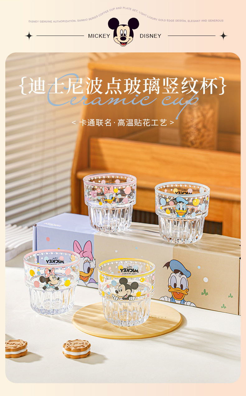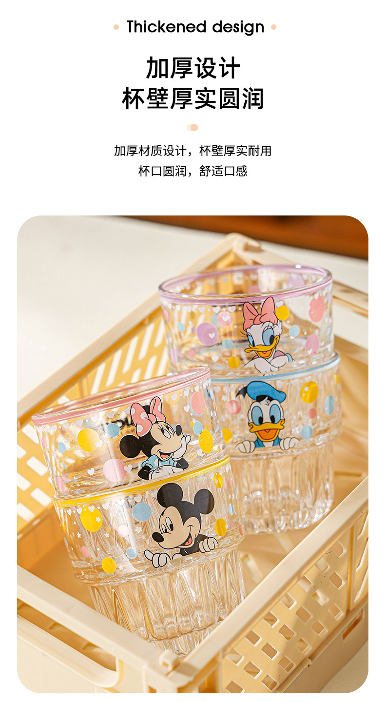 Nueva taza de vidrio de Disney, taza de agua de dibujos animados de lunares, taza de agua para el hogar femenina de alto valor, taza de agua para la oficina, pareja