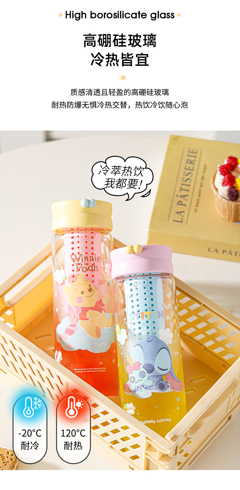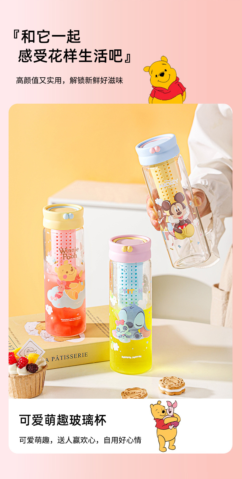 Nueva taza de agua de vidrio de Disney, alta resistencia a altas temperaturas, pajita de gran capacidad con tapa, taza de mango con fugas de té de alto valor