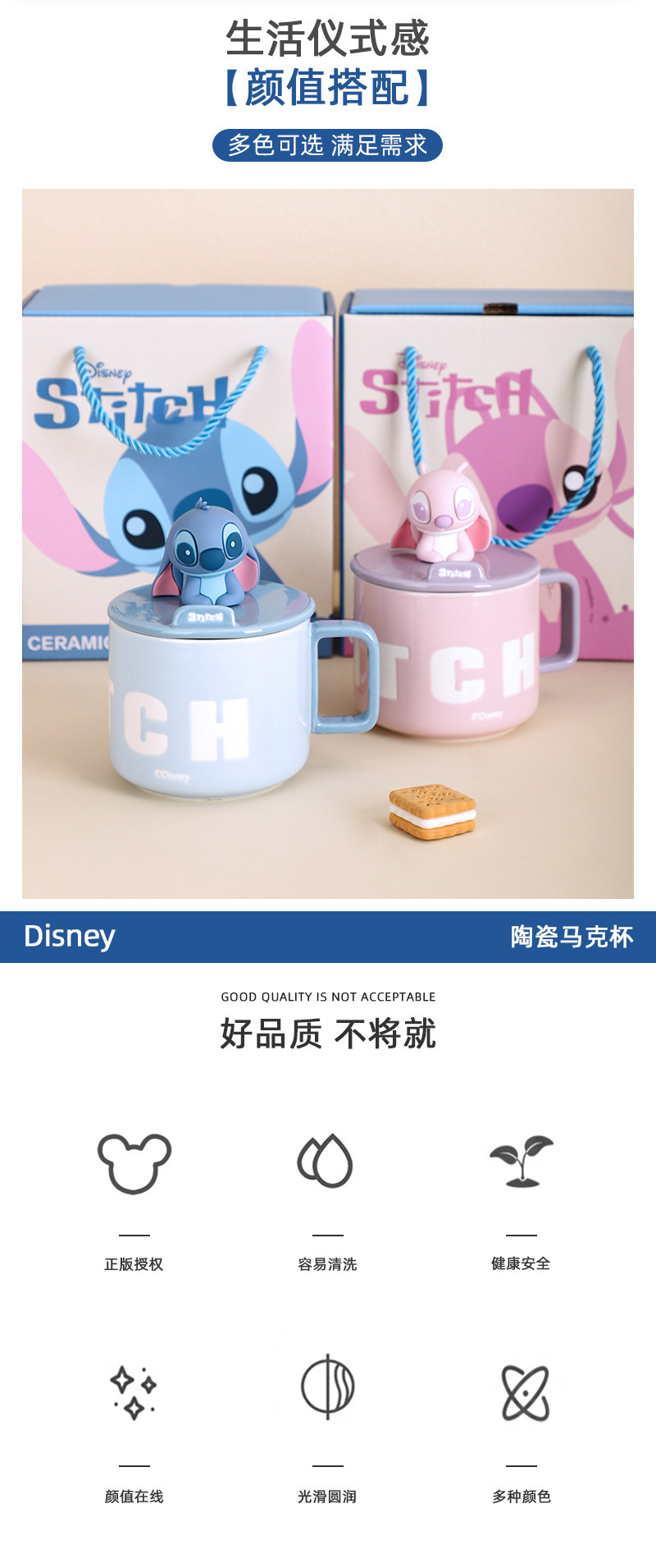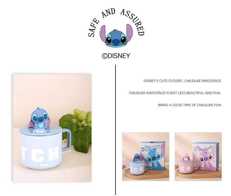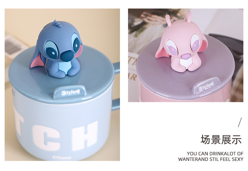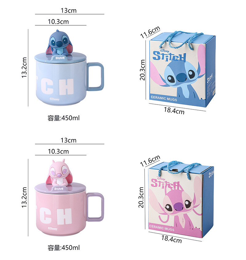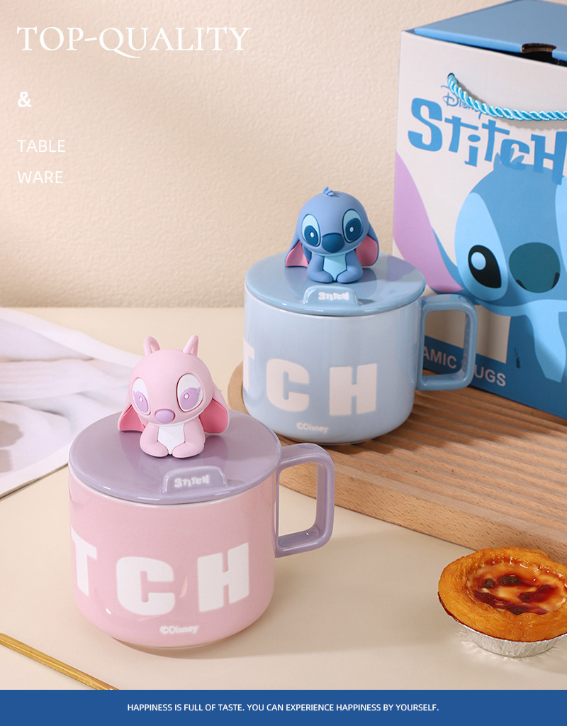 Taza de agua de cerámica Stitch Juego de tazas de alto valor Forma con tapa Taza de pareja Regalo de cumpleaños