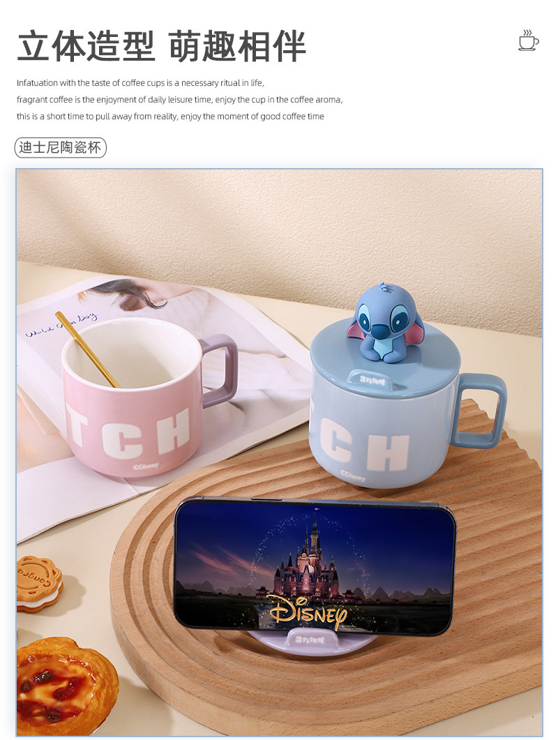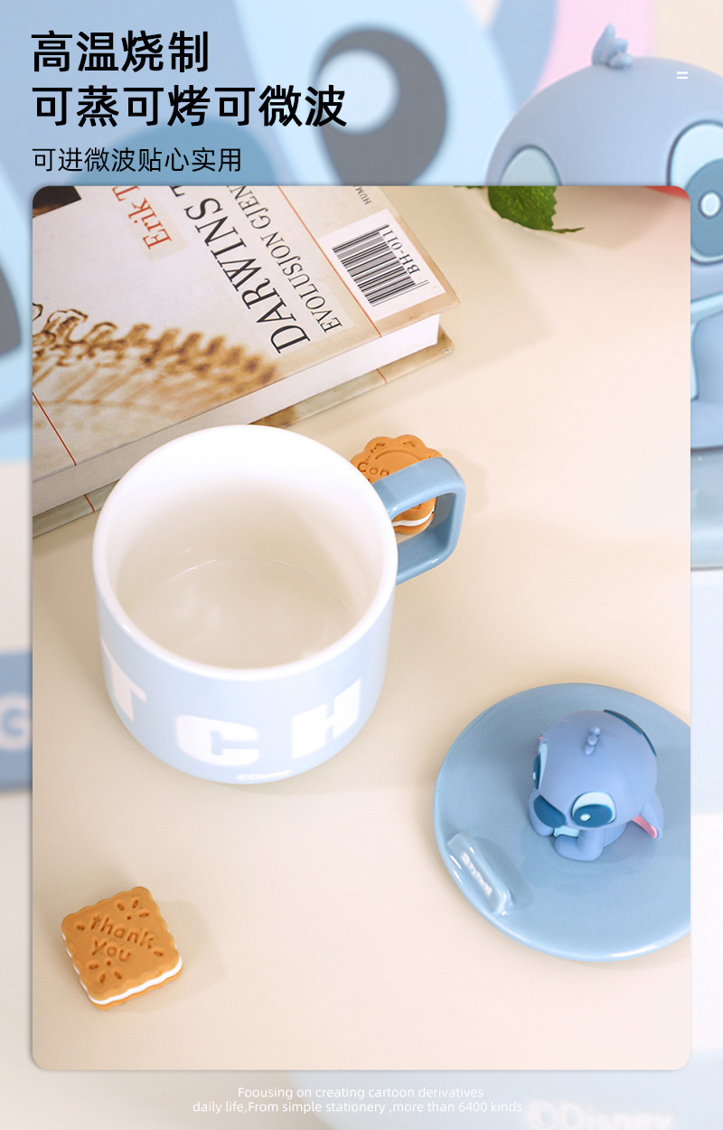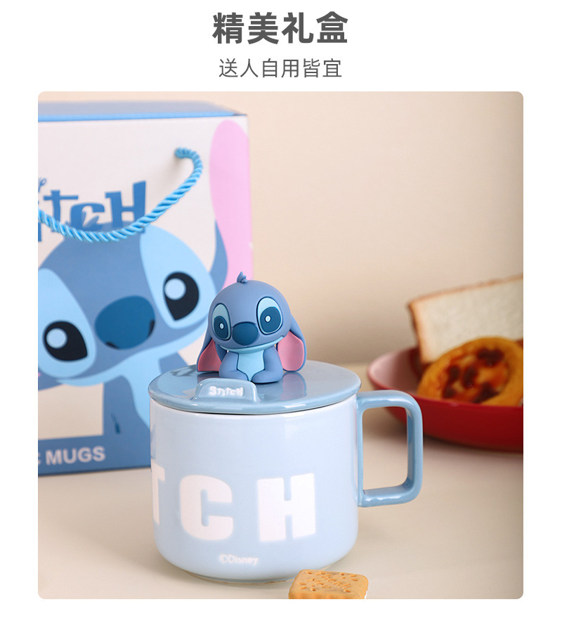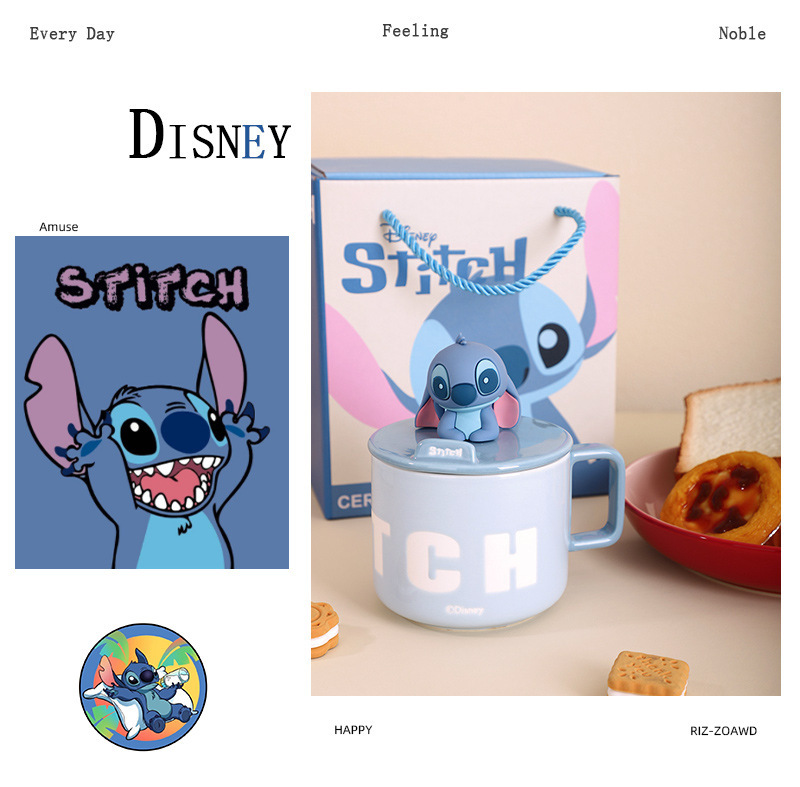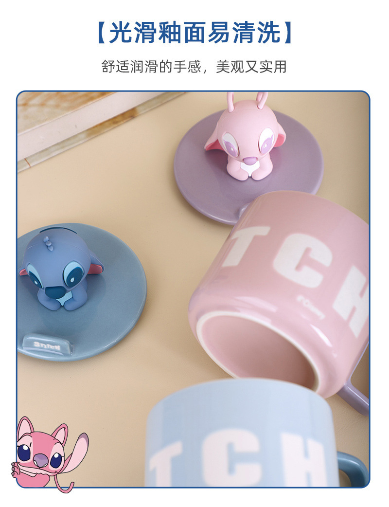 Taza de agua de cerámica Stitch Juego de tazas de alto valor Forma con tapa Taza de pareja Regalo de cumpleaños