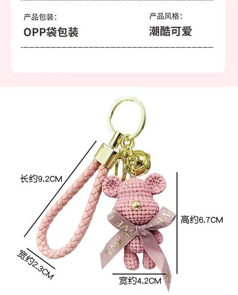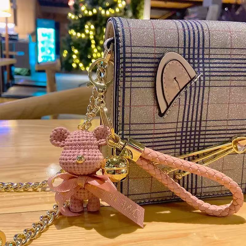 Lindo dibujos animados lana oso llavero mujer exquisita pareja colgante de coche ins mochila escolar colgante muñeca muñeca