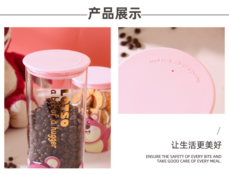 Tarro sellado de café de vidrio de oso de fresa Aperitivos de grado alimenticio Tarro de almacenamiento de dulces lindo de dibujos animados Tarro de regalo para niñas