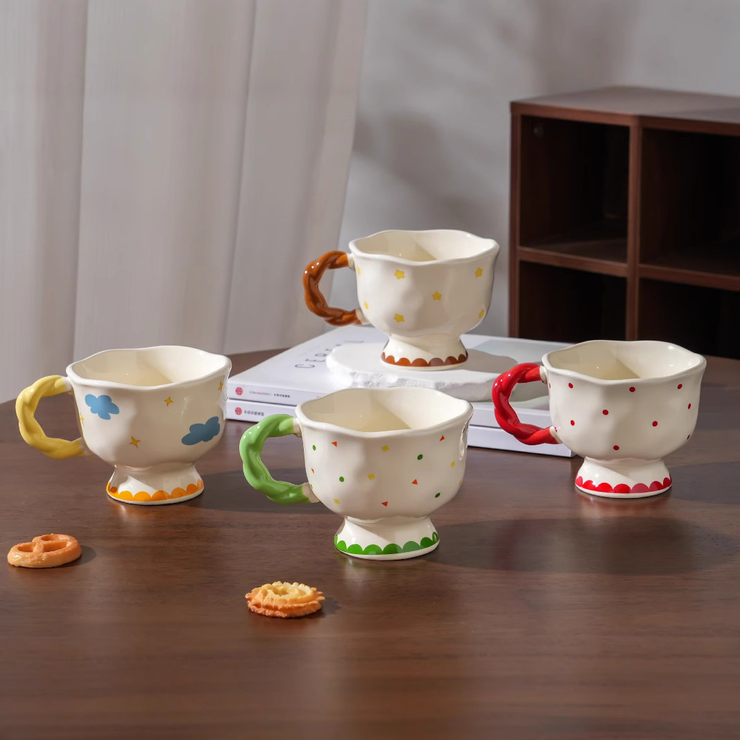 Crayón pequeño nuevo lindo taza de cerámica alta cara alta taza de agua para pareja café desayuno taza regalo de cumpleaños