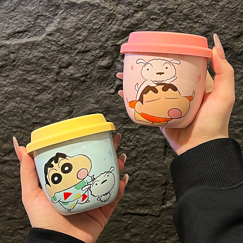 Auténtico lápiz con marca pequeña nueva taza de cerámica taza de agua con tapa de dibujos animados para niños lindos tazas de regalo al por mayor
