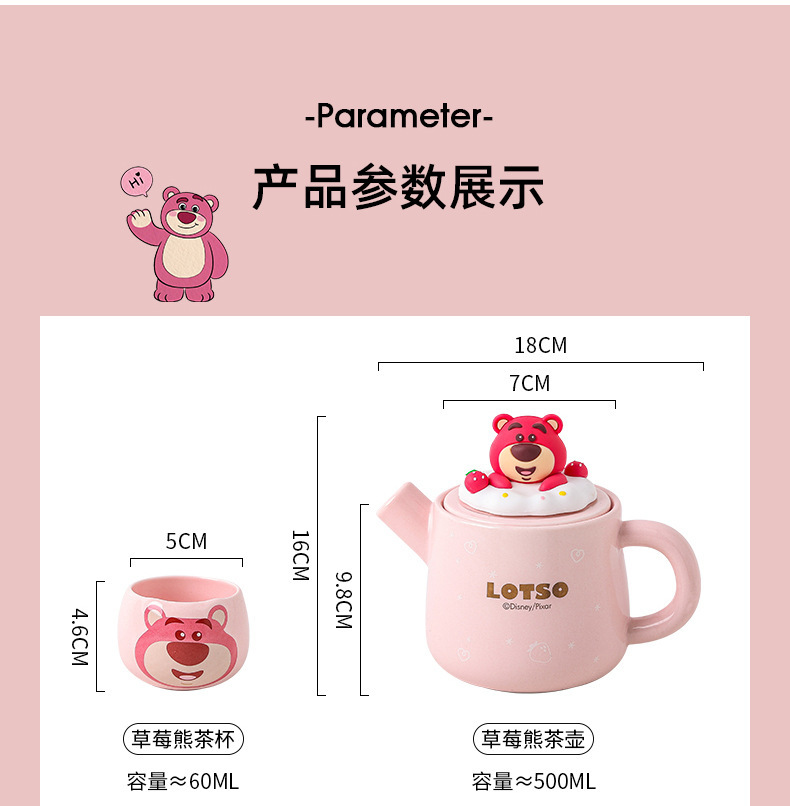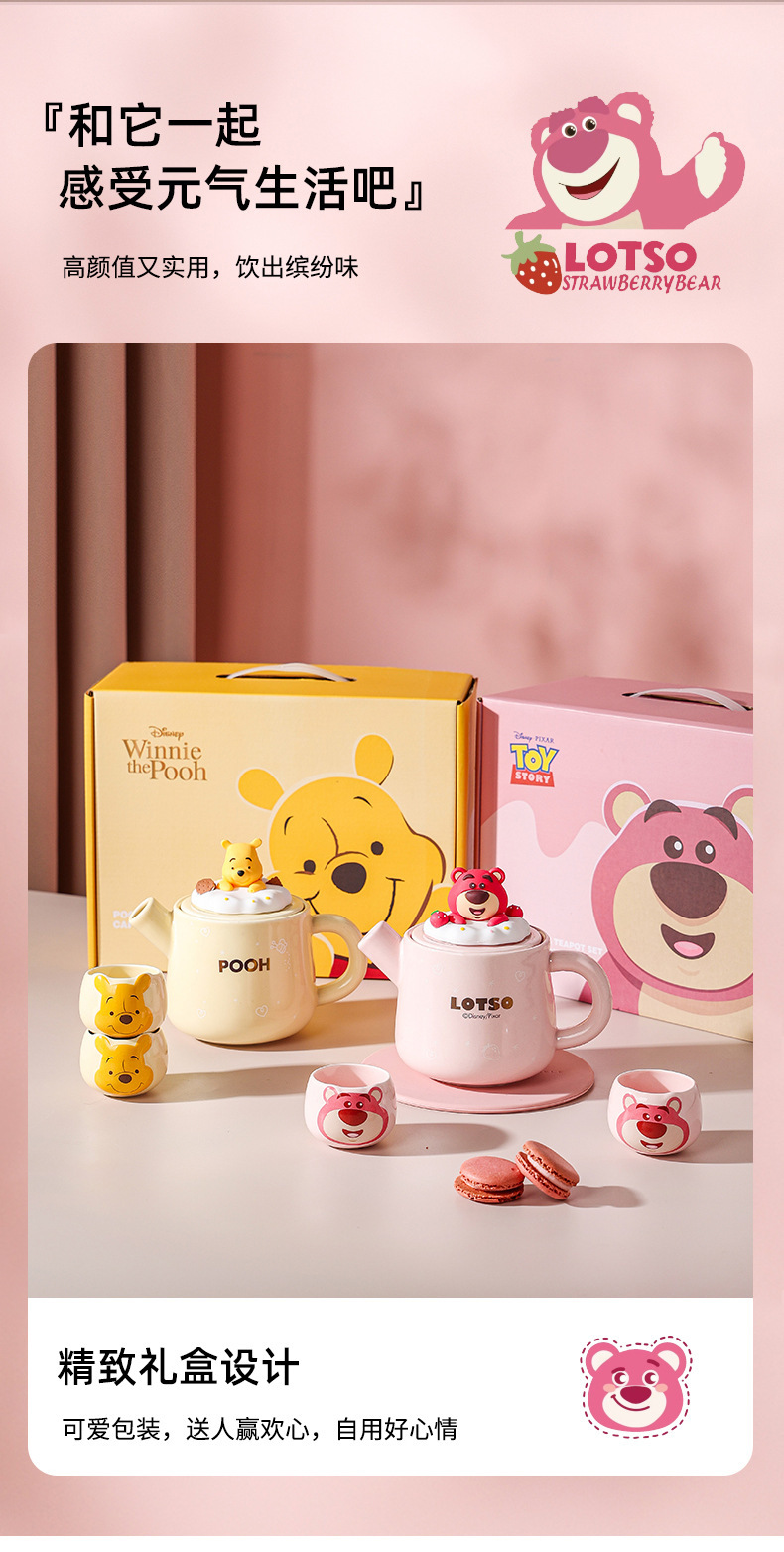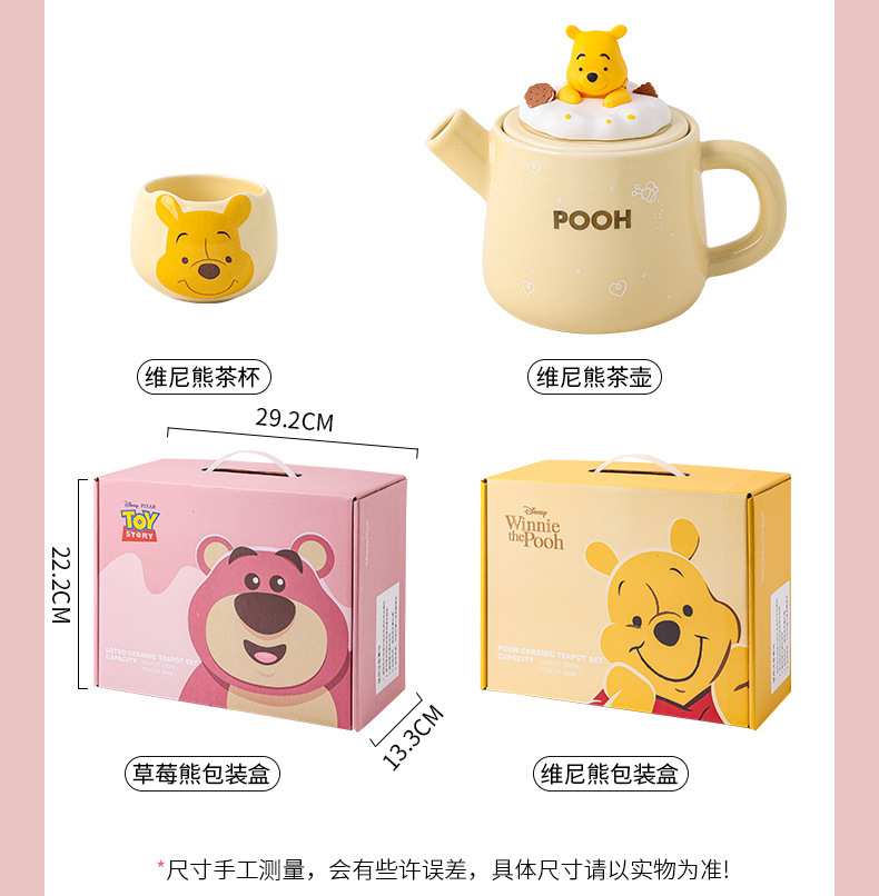 Osos de fresa Winnie osos de dibujos animados cerámicos domésticos de alto valor de la cara set tetera de una olla dos tazas de regalo set caja de regalo