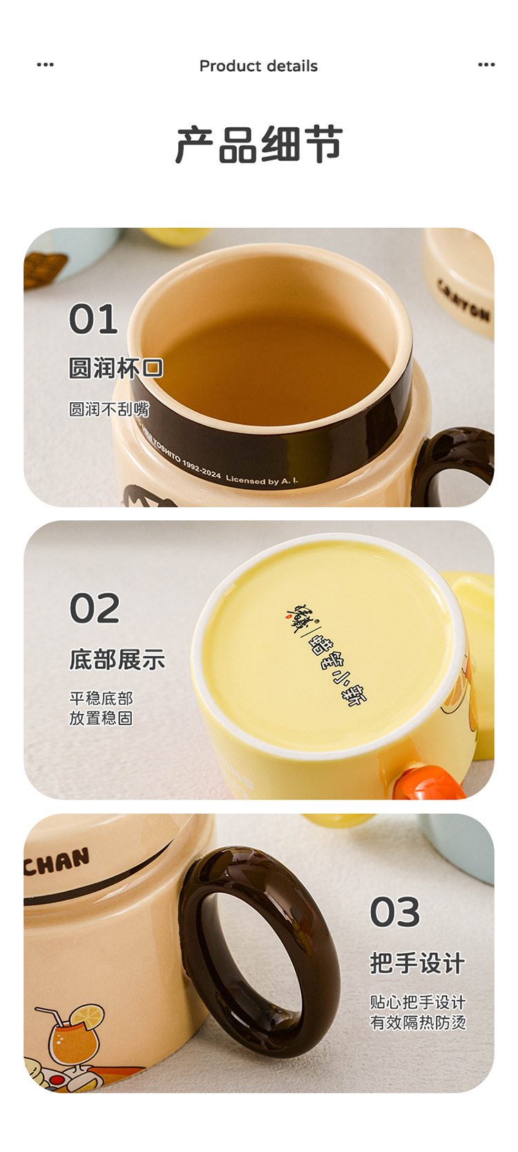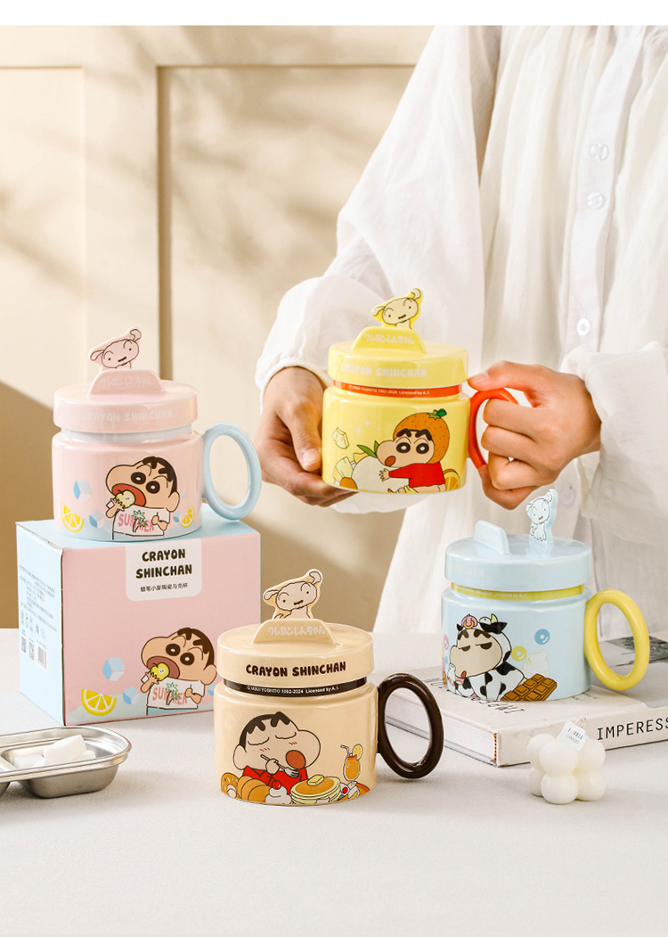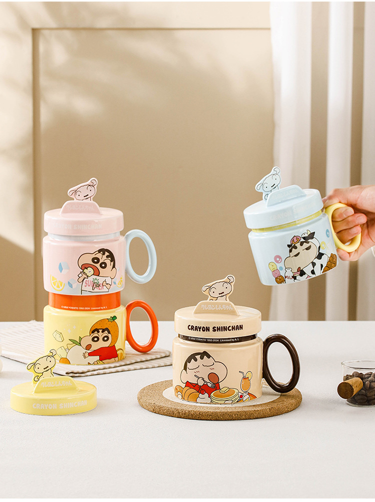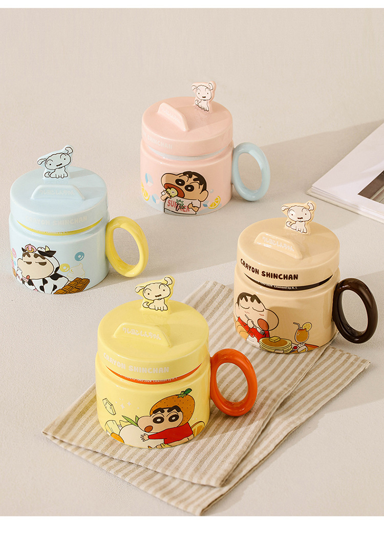 Lápiz pequeño nuevo soporte de marca conjunta de cerámica taza con tapa caricatura encantadora taza de desayuno de alto valor de cara caja de regalo taza