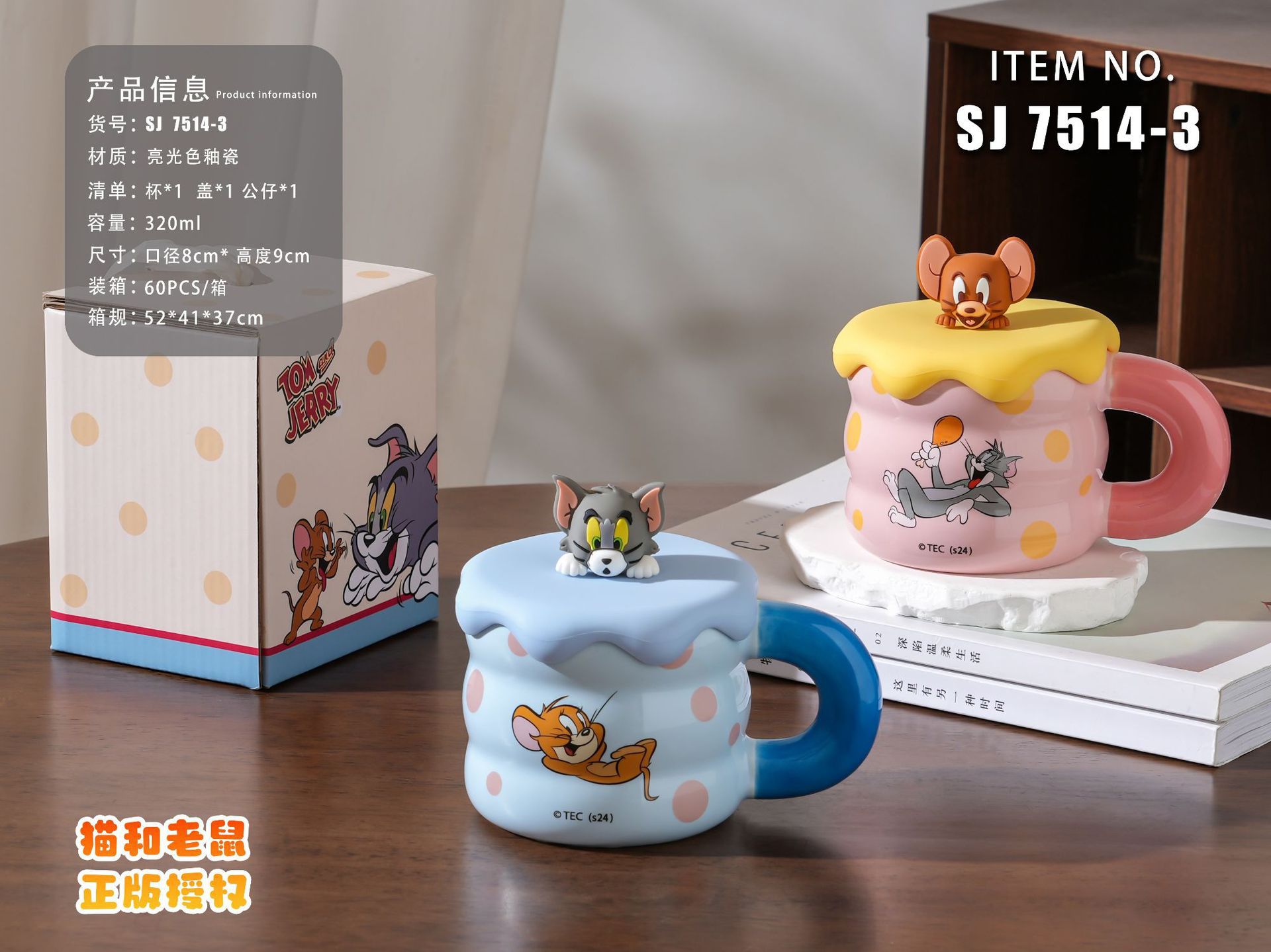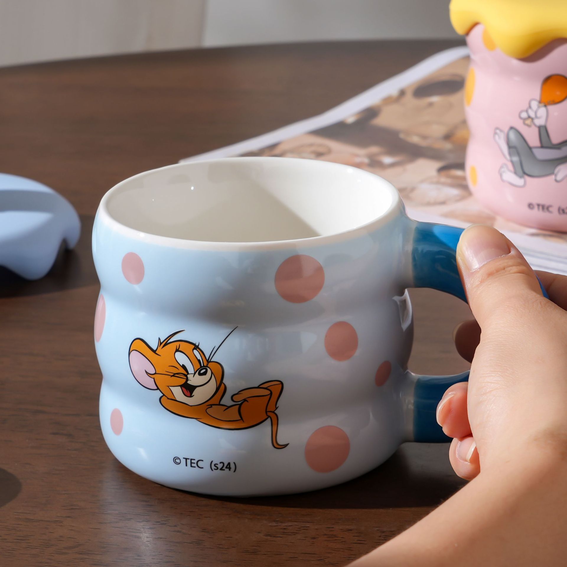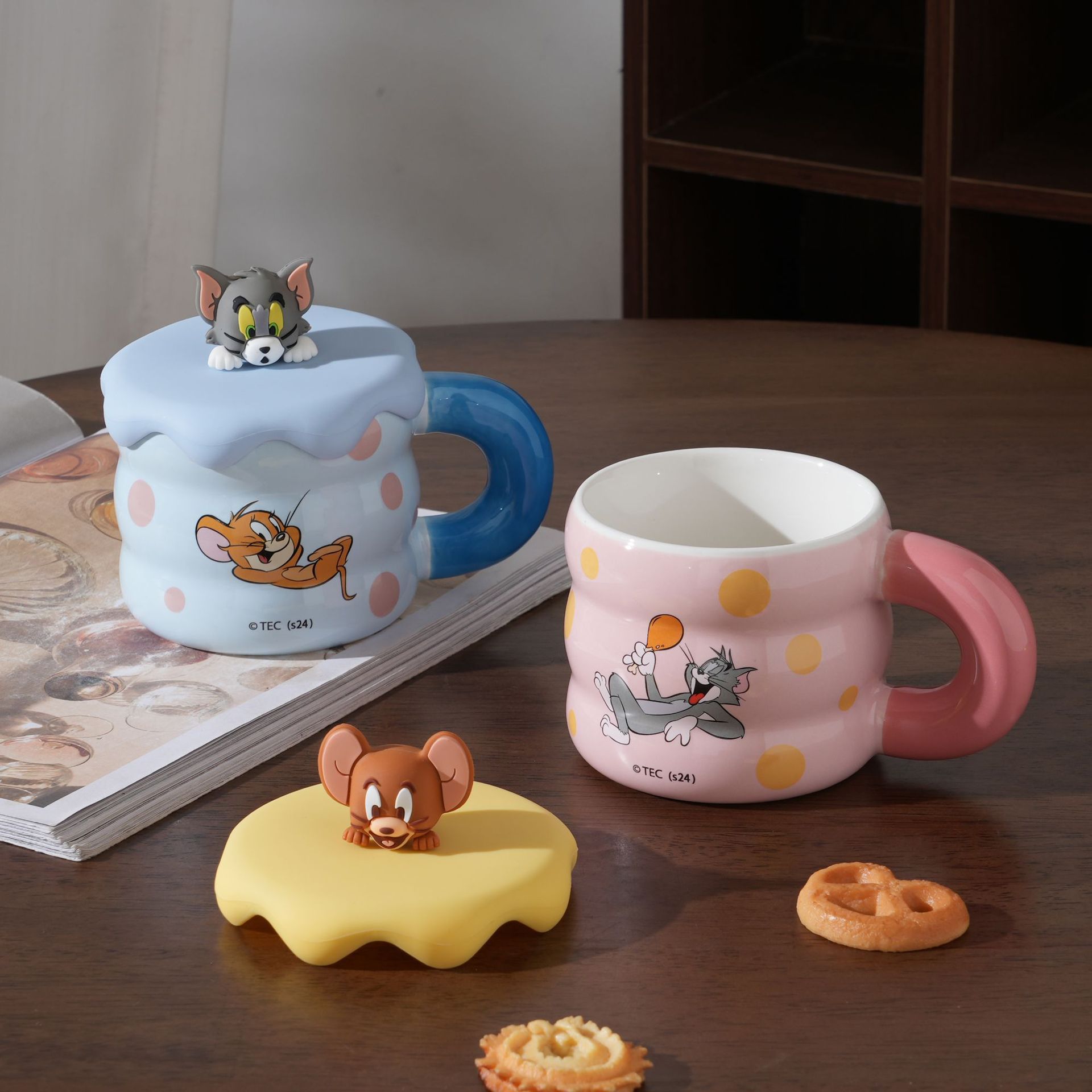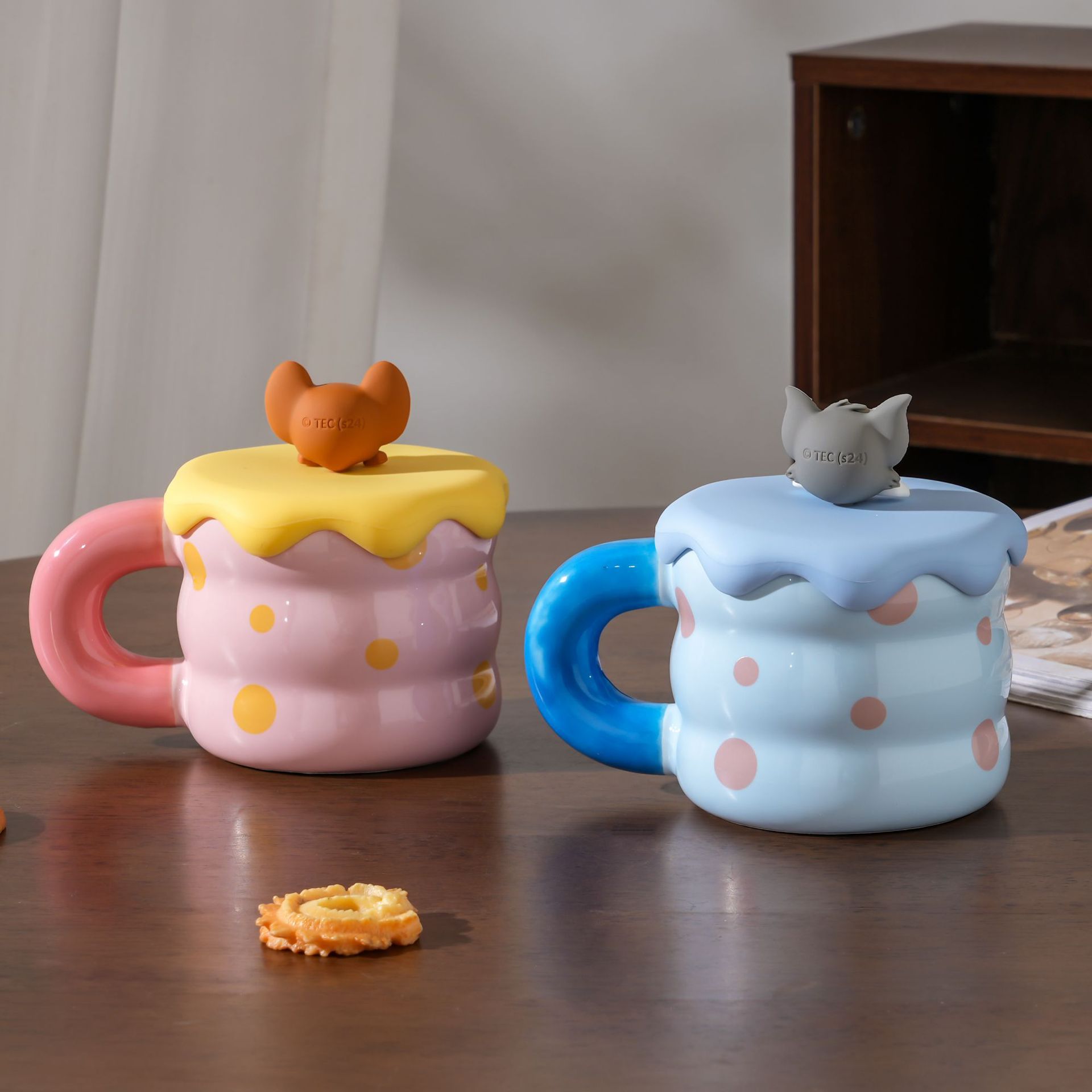 Gato y ratón taza de leche taza de café con tapa de alta calidad de la niñez taza de cerámica de agua lindo regalo de cumpleaños