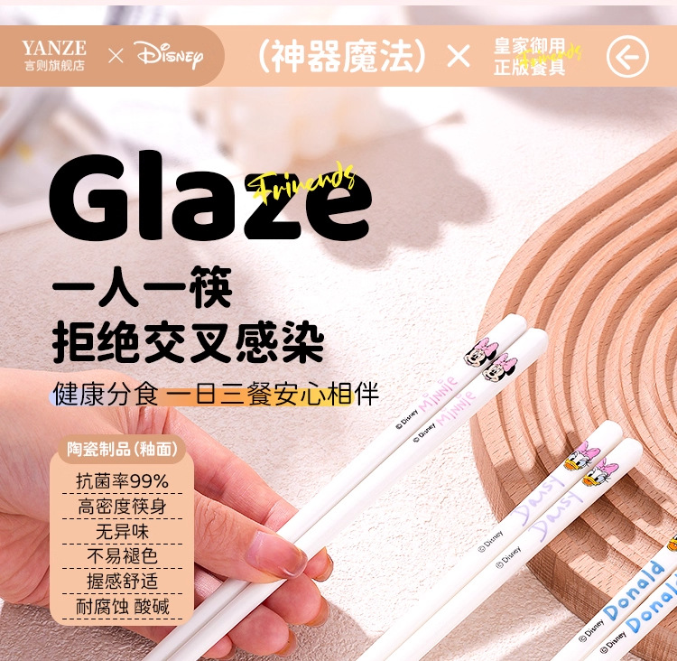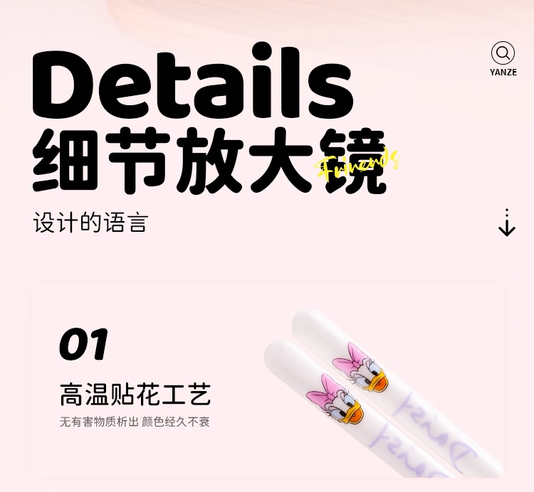 Disney Mickey Series Palillos de cerámica para el hogar Palillos para niños antibacterianos, antimoho y antideslizantes Vajilla de dibujos animados de alto valor