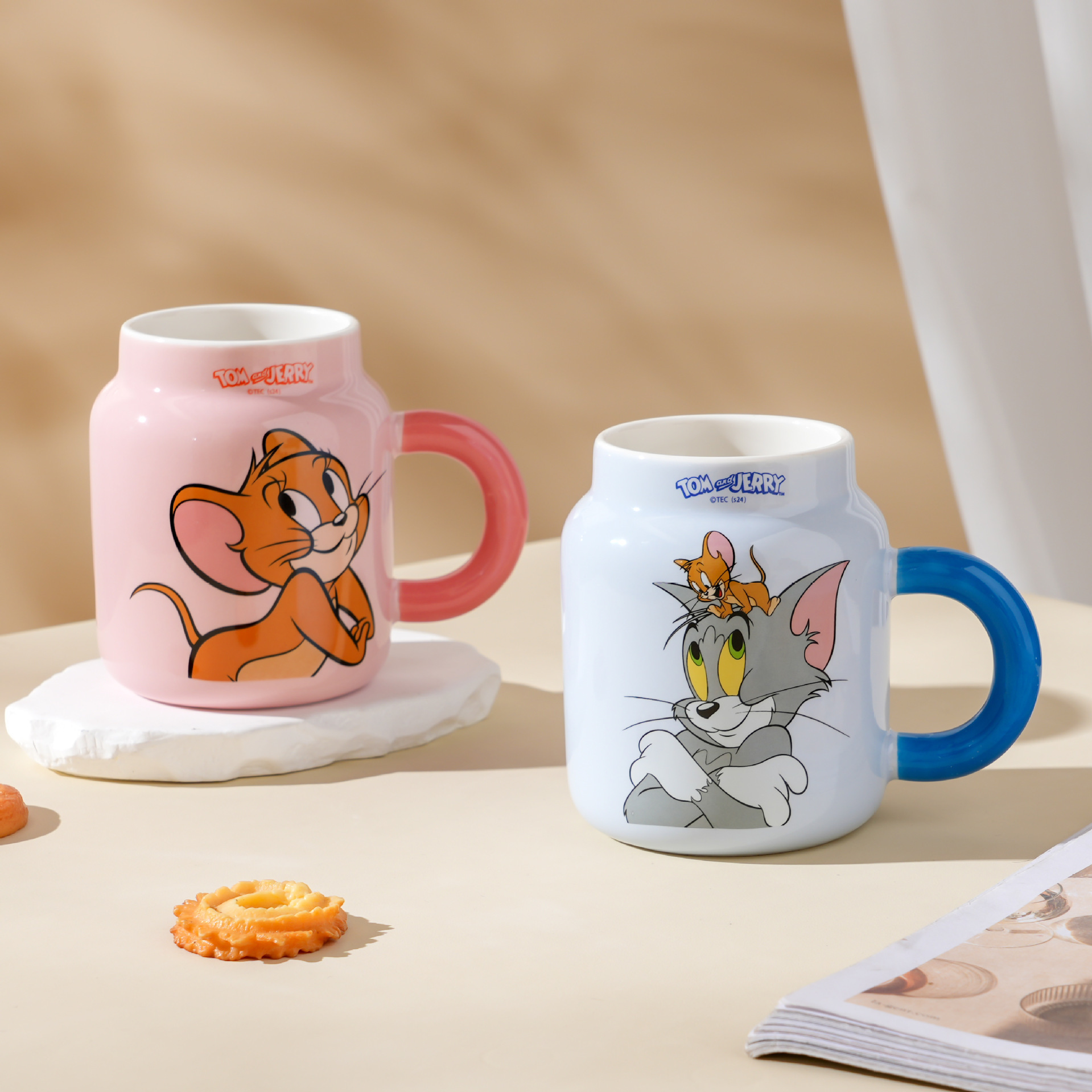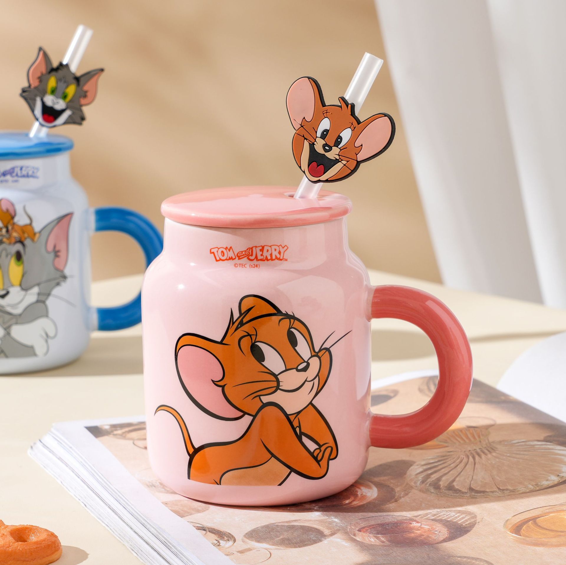 Gatos y ratones nuevos lindos tazas de cerámica con tapa tazas de café caseras copas de regalo de cumpleaños tazas de paja