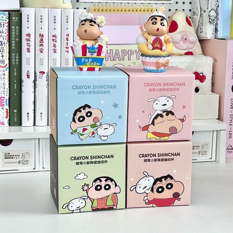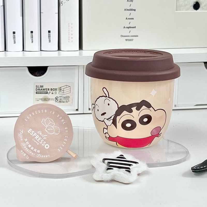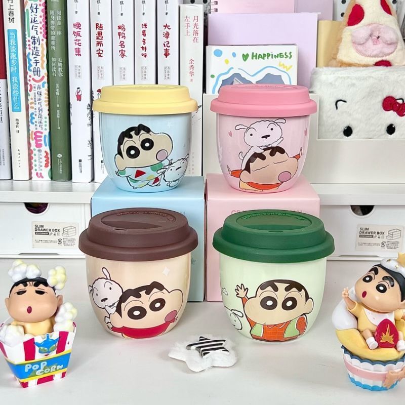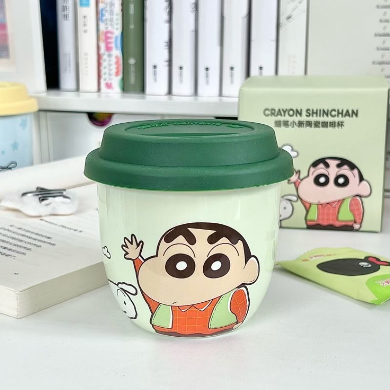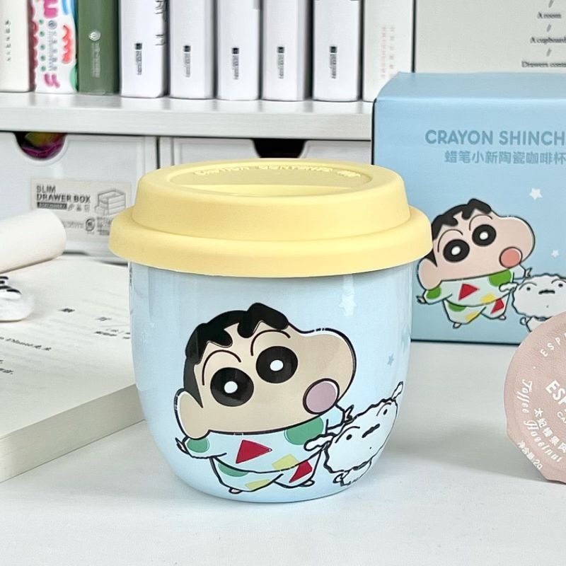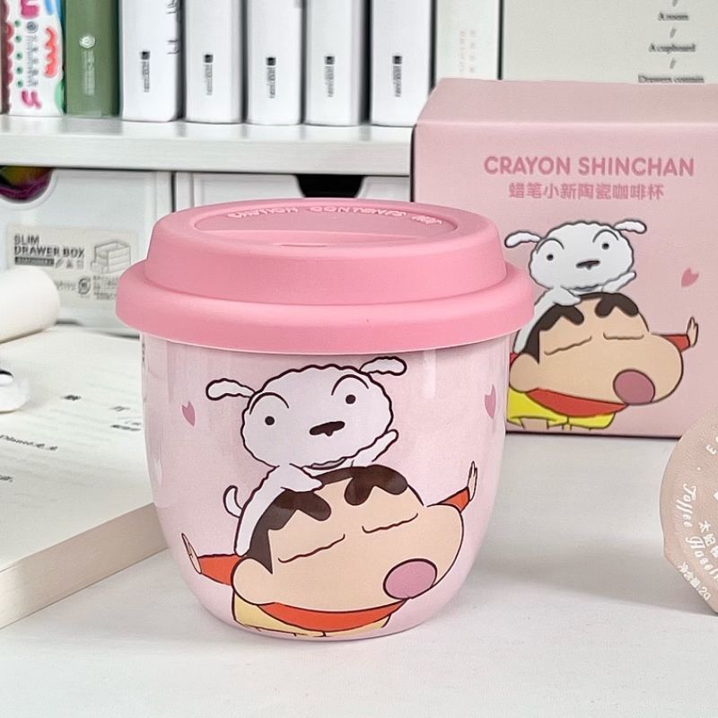 Taza Crayon Shin-chan con tapa Taza de agua de cerámica de marca compartida genuina Taza de regalo lindo de dibujos animados para niños al por mayor
