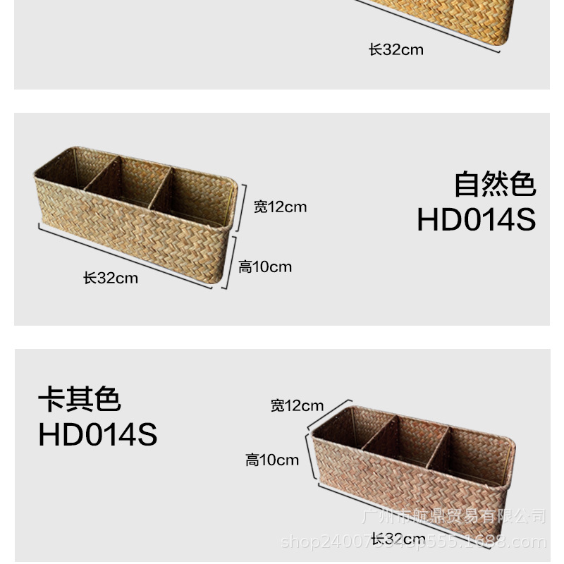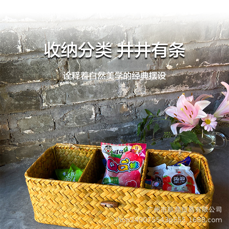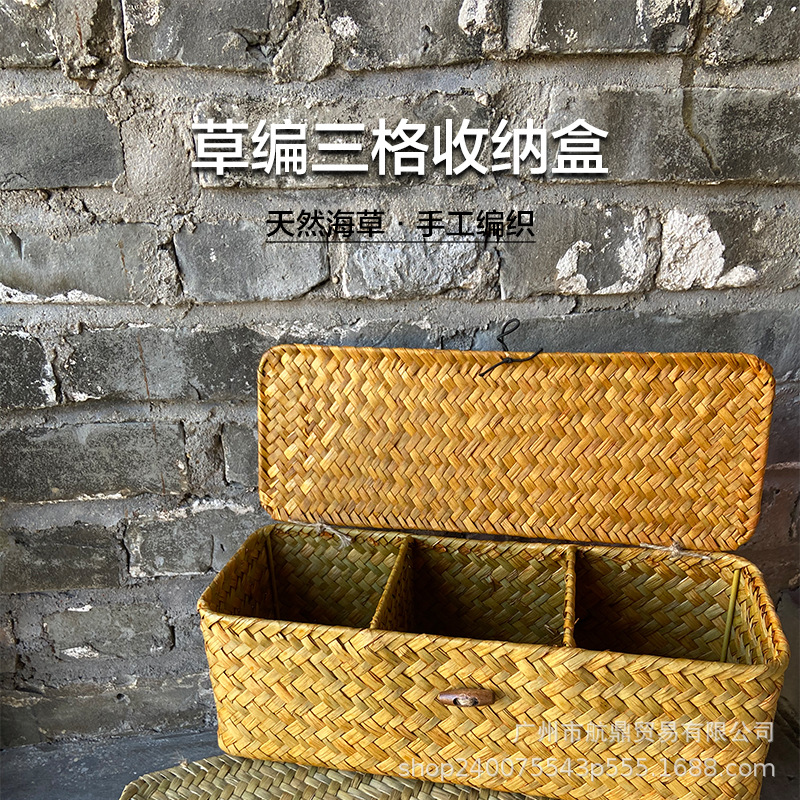 Cestas de almacenamiento de algas de mar tejidas a mano no bambú tejido profundo material tres particiones de almacenamiento tejido tejido canasta de papel al por mayor retro