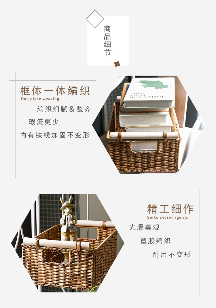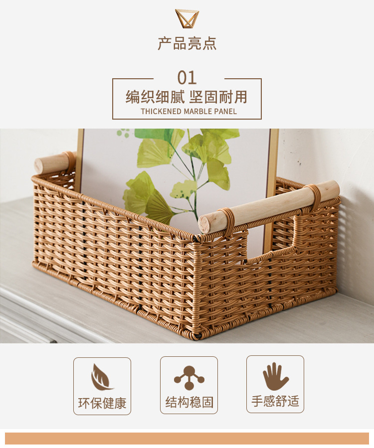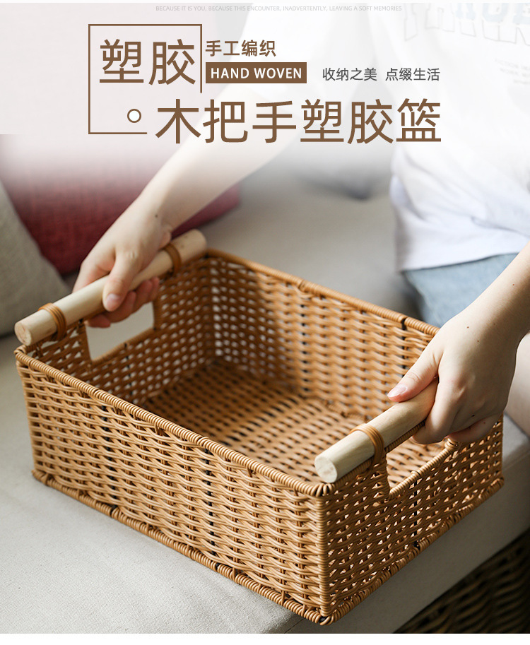 Cesta de almacenamiento de ratán personalizada, bocadillos tejidos a mano, canasta de almacenamiento de artículos diversos, sala de estar doméstica tejida de bambú, mueble de TV, escritorio