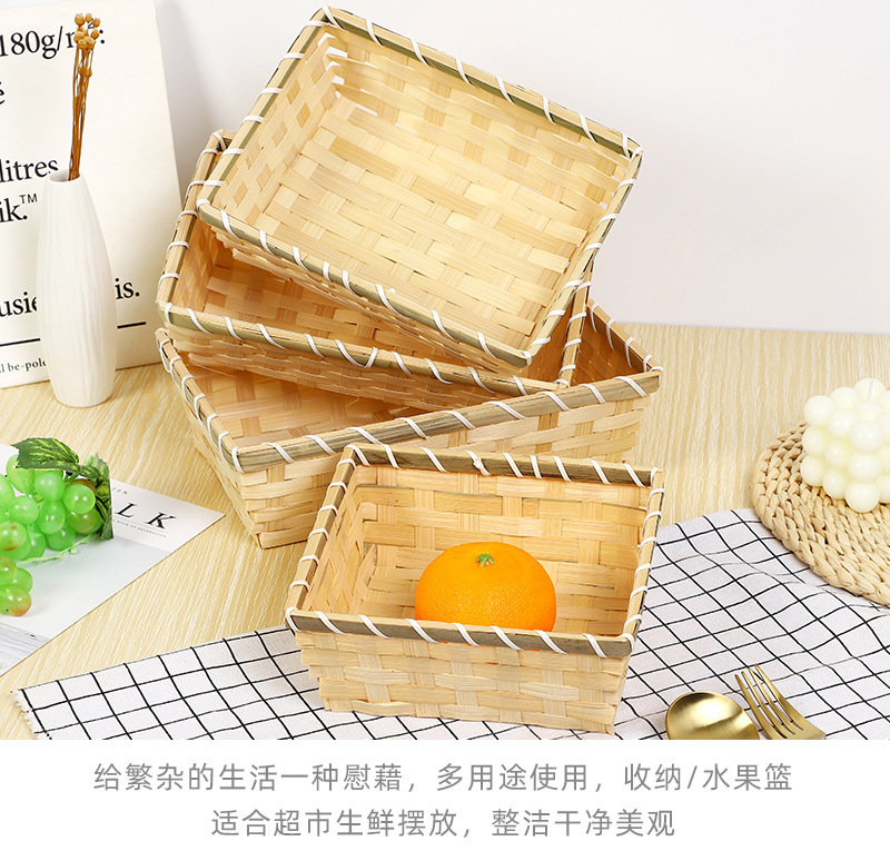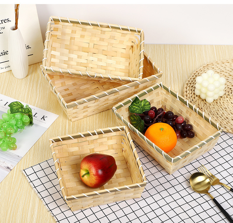 Cesta de bambú cuadrada Cesta de bambú tejida Cesta de almacenamiento de huevos Bandeja hecha a mano Productos de bambú Cesta de pan al vapor Cesta comercial