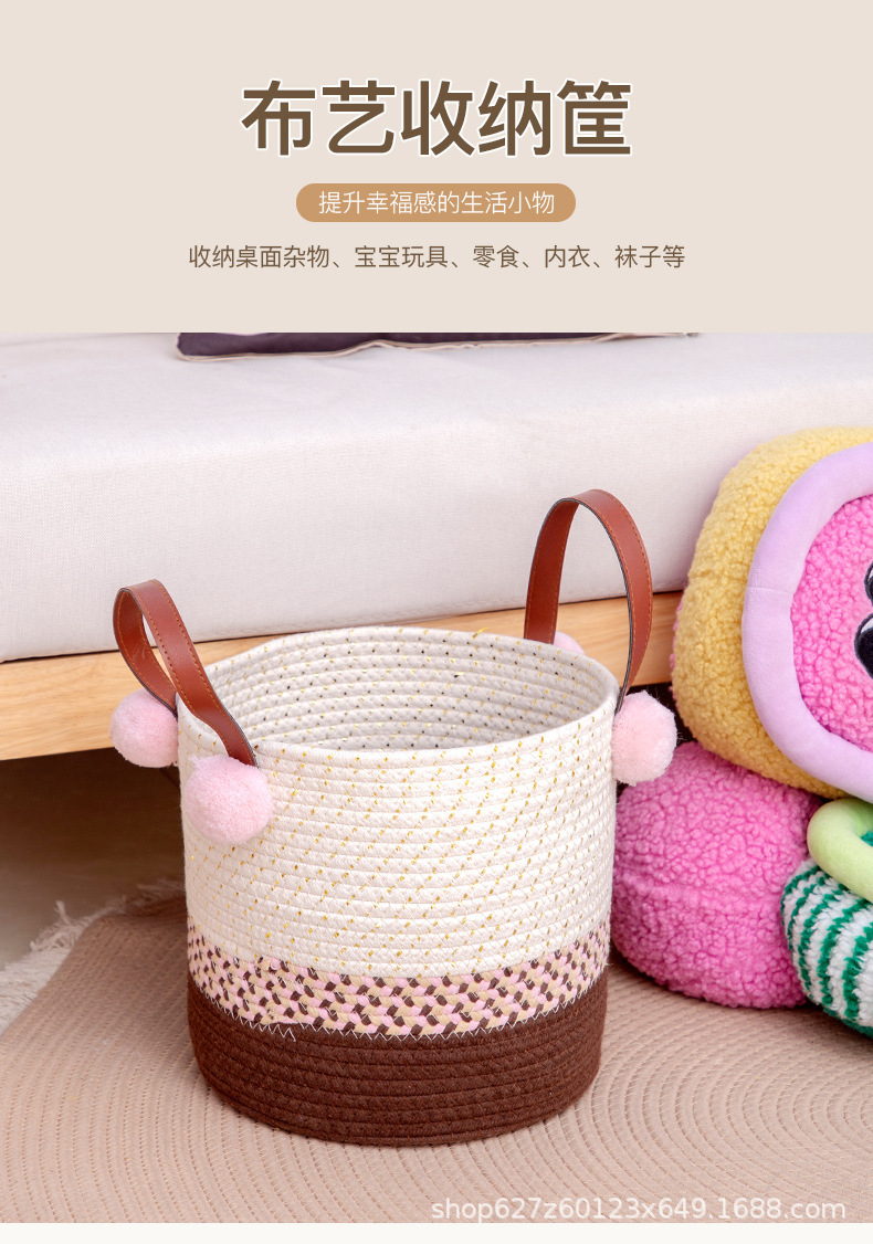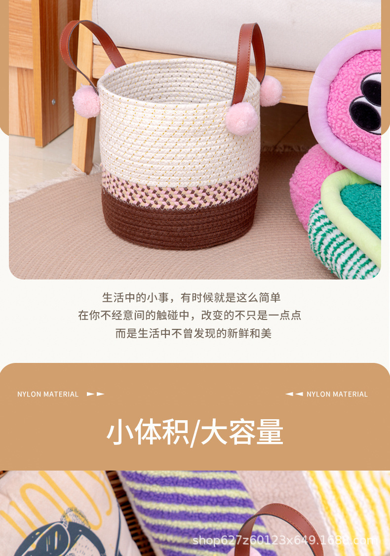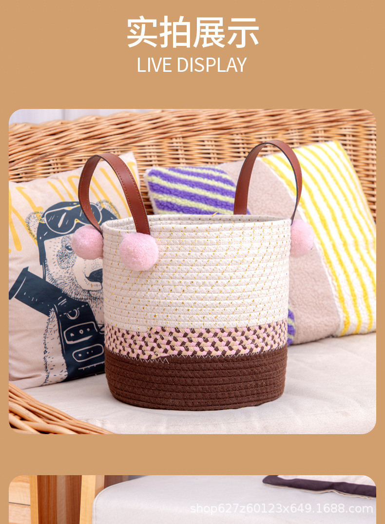 Cesta de almacenamiento tejida con cuerda de algodón, barril de almacenamiento, juguetes de mesa, artículos diversos, canasta de ropa sucia, canasta de lavandería, caja de almacenamiento