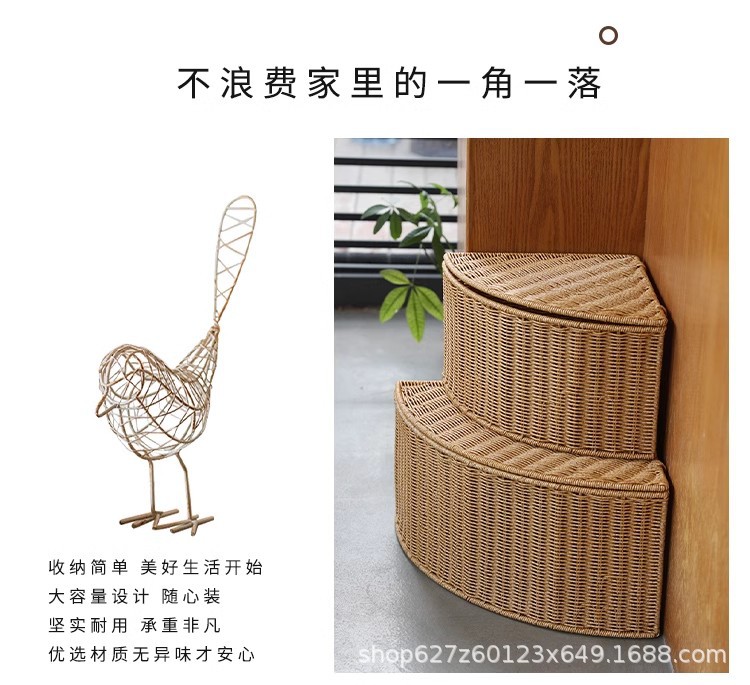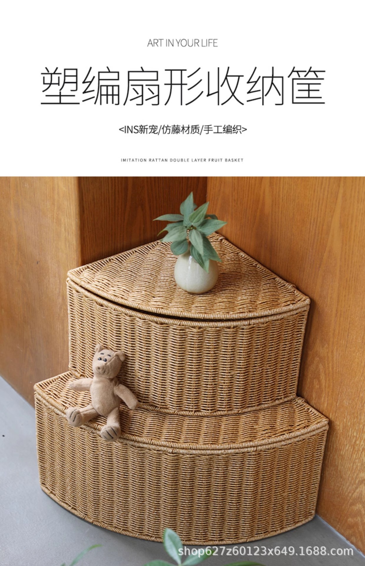 Esquina del dormitorio, caja de almacenamiento en forma de abanico, caja de acabado de esquina tejida de ratán, armario grande, esquina, sala de estar, triángulo de almacenamiento