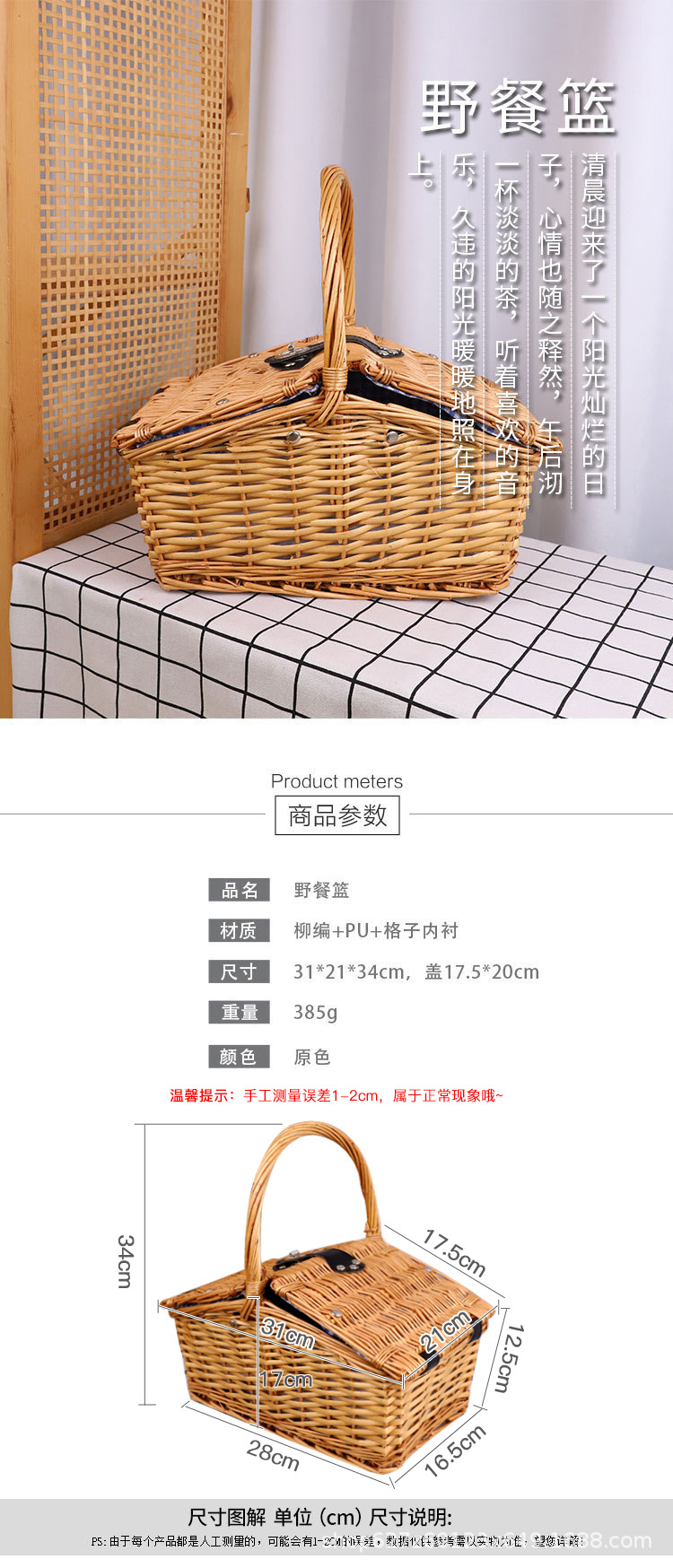 | Colores | Sauce al vapor poco profundo (31*21*34),Tablero de caja de cesta de picnic (sin vajilla),Tablero de caja de cesta de picnic (con vajilla),Tablero de caja de cesta de picnic (mantel de vajilla) |
