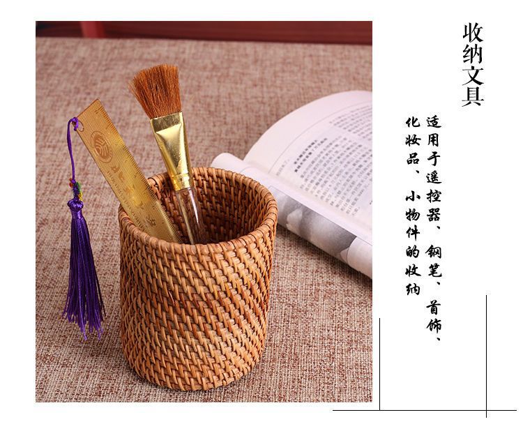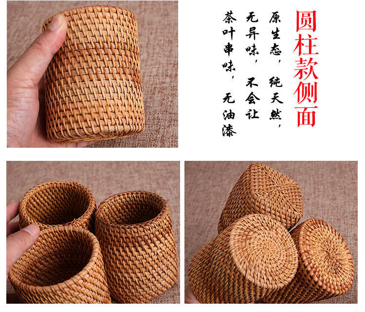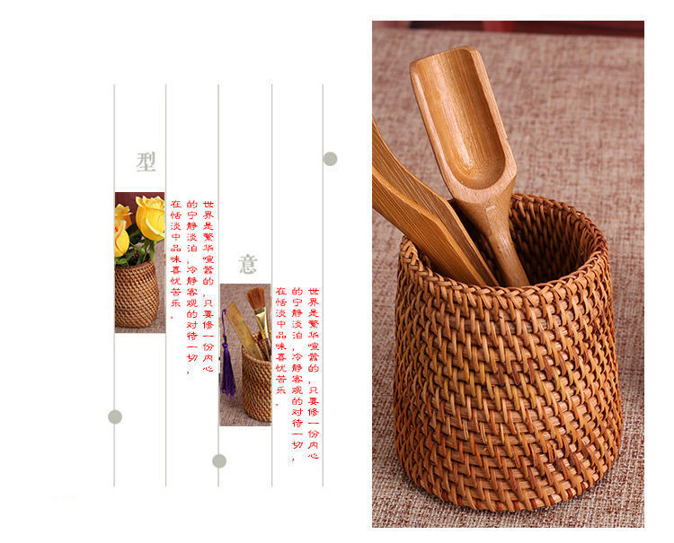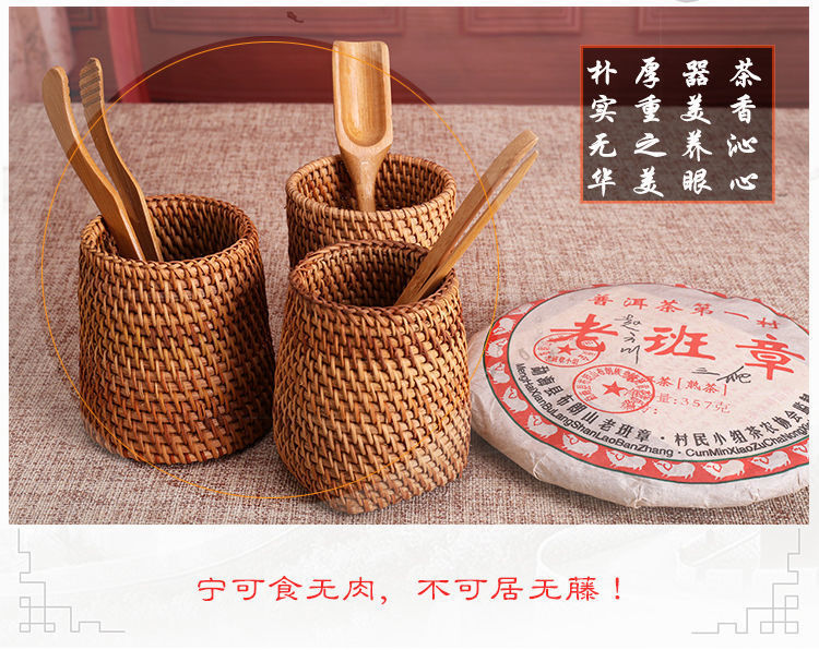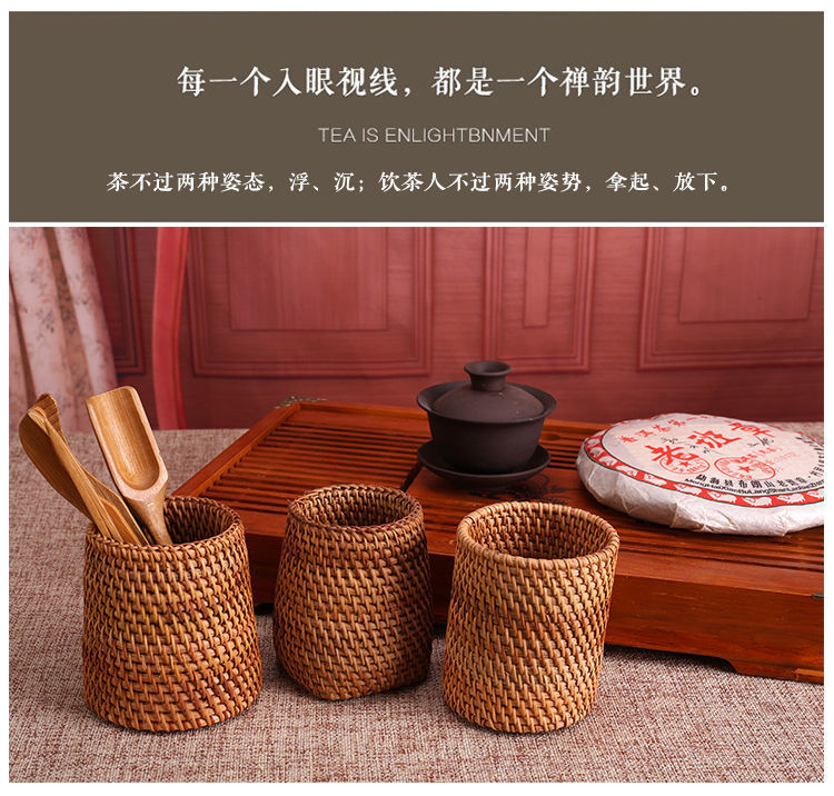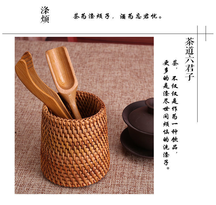 Ceremonia del té de ratán Juego de seis caballeros, portalápices, tubo de té, té, accesorios de juego de té de kung fu