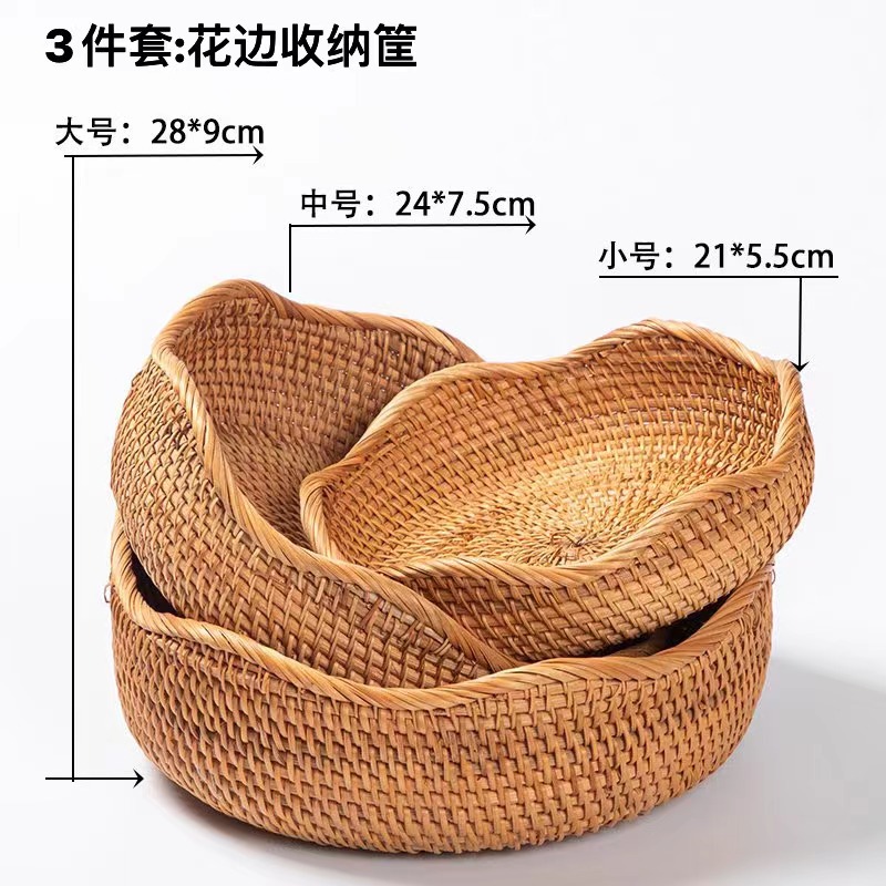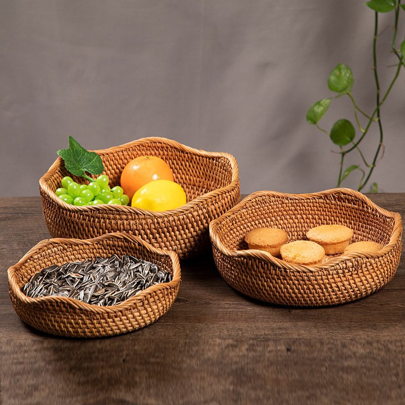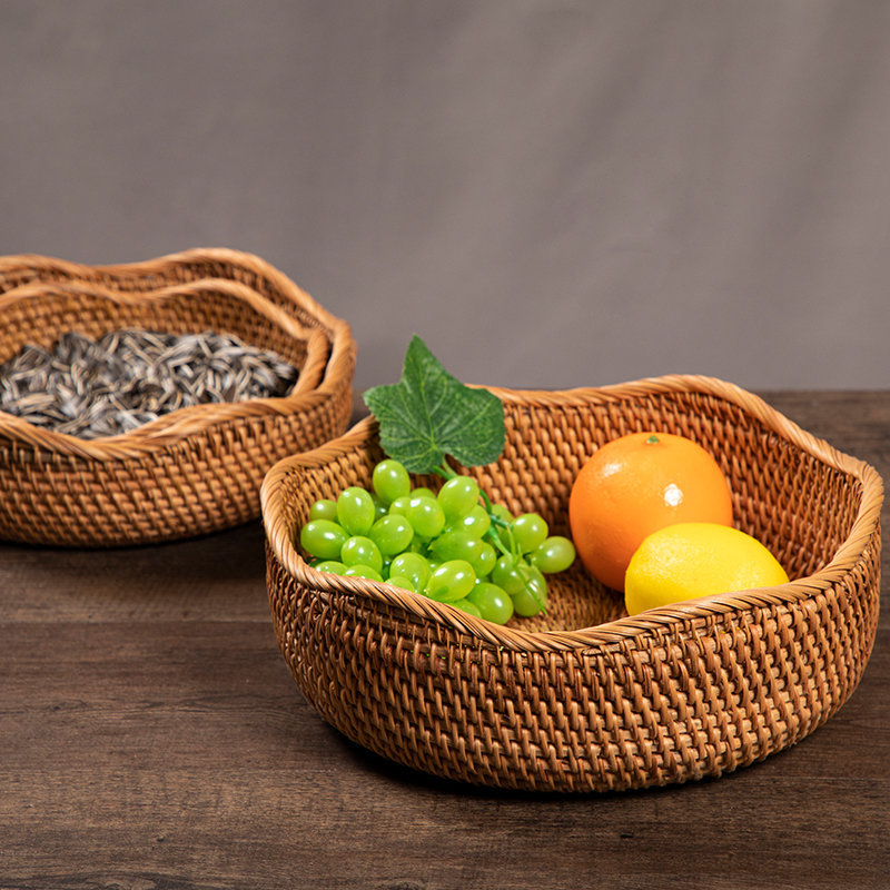 Cesta de almacenamiento tejida de ratán de otoño de O & Vietnam hecha a mano, bocadillos redondos domésticos grandes, bollos al vapor, bollos al vapor, bollos al vapor, canastas de frutas