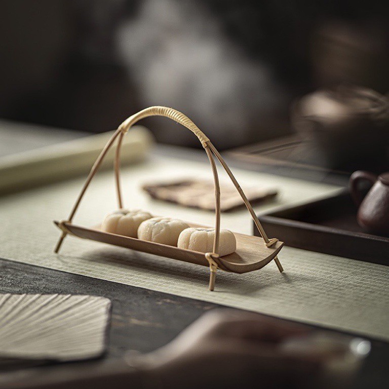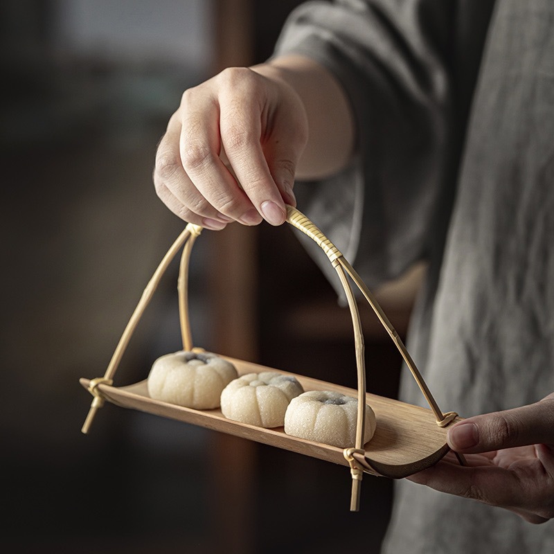 Productos de bambú Hecho a mano Bambú Toalla de estilo japonés Canasta de mano Ceremonia de té Plato de aperitivos Plato de té retro Mini plato de frutos secos