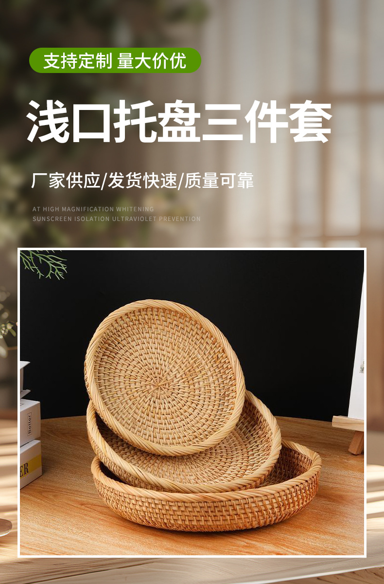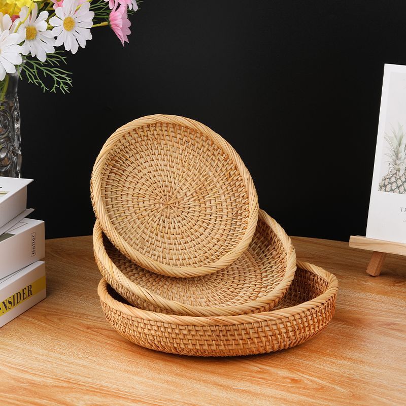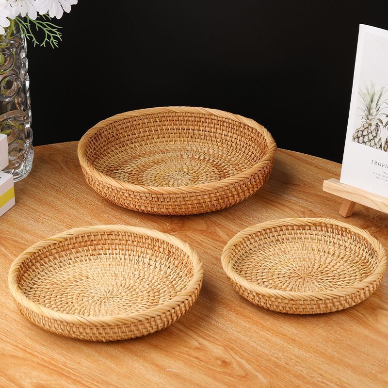 Vietnam Qiuteng Tejido a mano de ratán OVNI Cesta de frutas Cesta de almacenamiento redonda Mesa de centro Cesta de acabado de mesa Plato de bocadillos