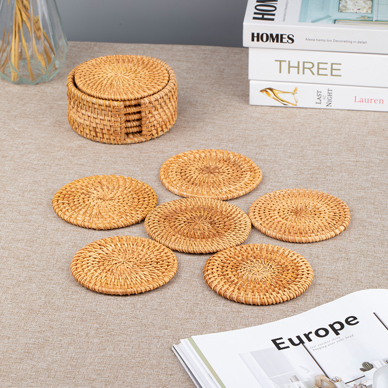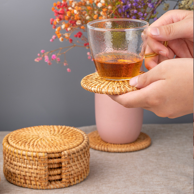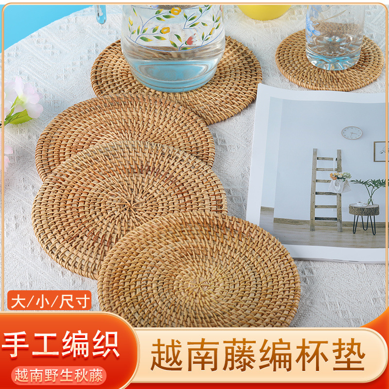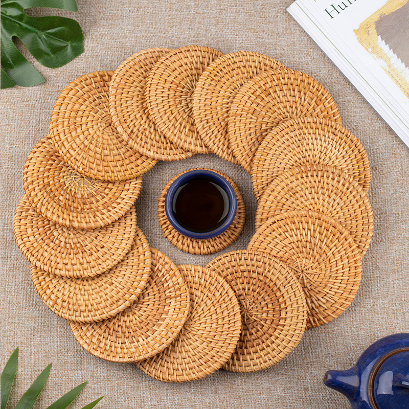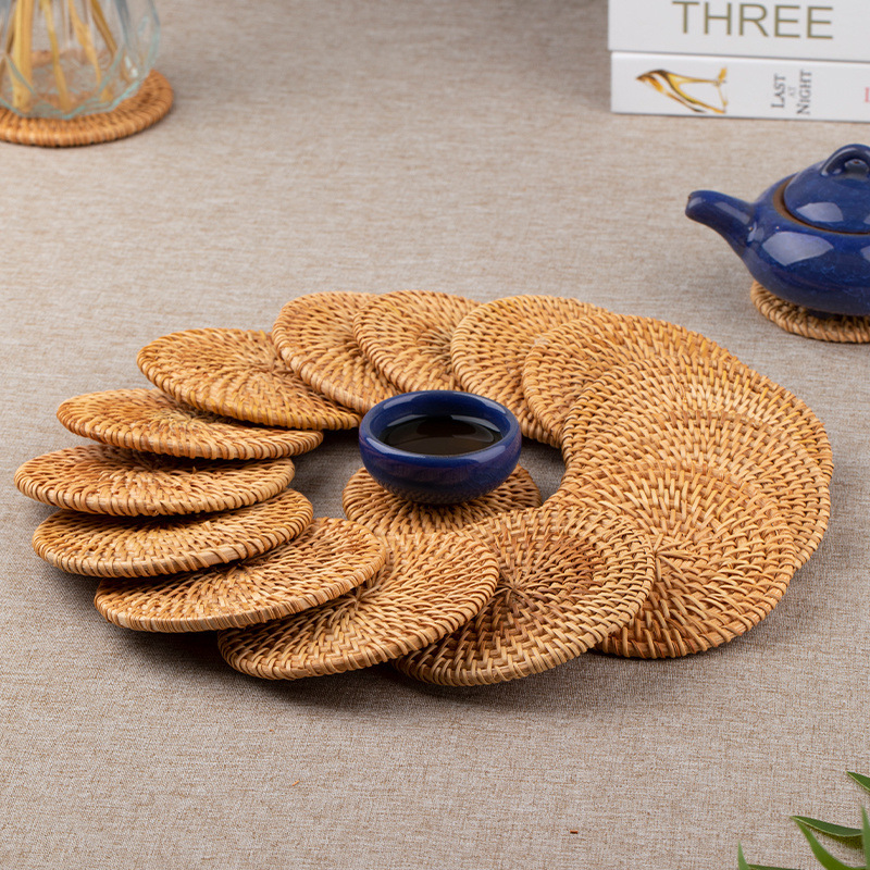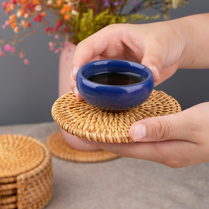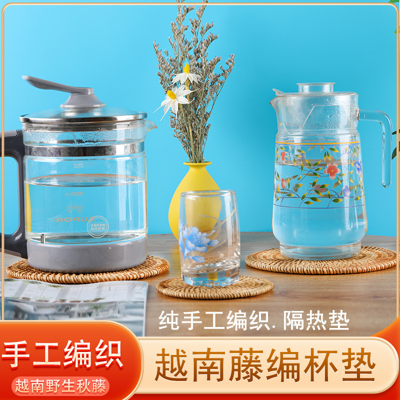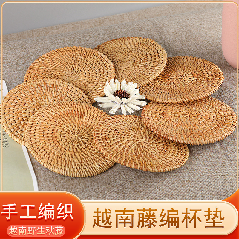 Posavasos de ratán vietnamita, teteras hechas a mano, ceremonia del té, juego de té, mantel de aislamiento térmico, mesa de comedor, plato de salud a prueba de escaldaduras, taza