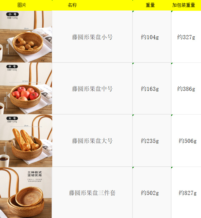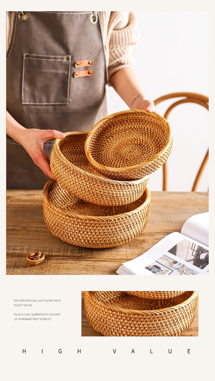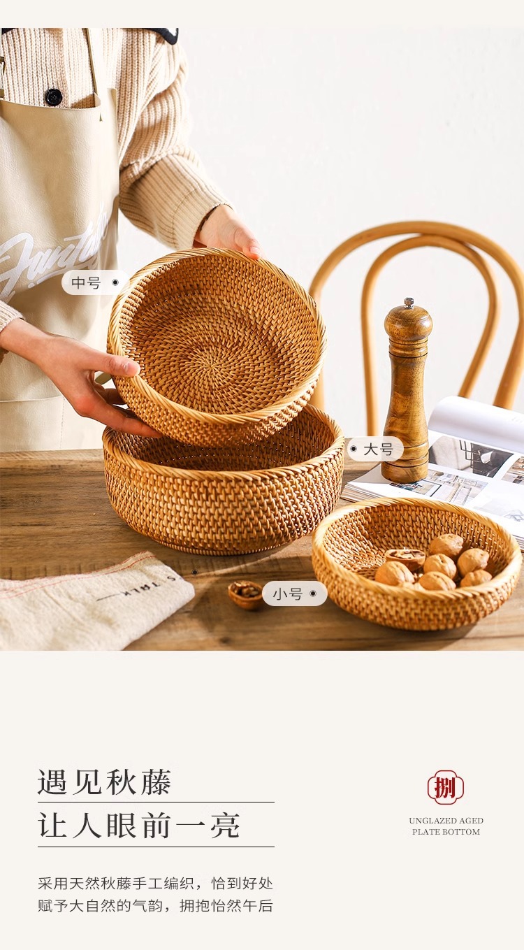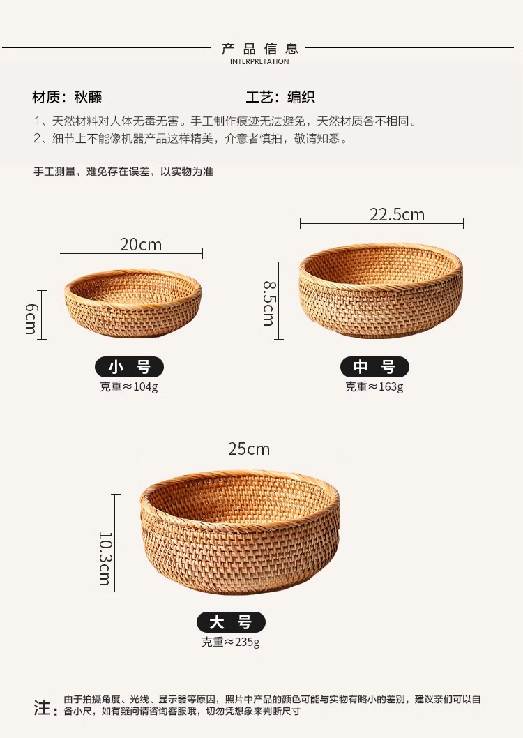 | Color | Tamaño pequeño de la bandeja redonda de ratán, tamaño medio de la bandeja redonda de ratán, tamaño grande de la bandeja redonda de ratán, conjunto de tres piezas de la bandeja redonda de Ratán |